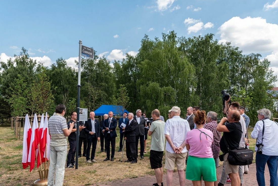 Inicjatorem upamiętnienia w Poznaniu Alberta Camus był Adam Suwart, syn uczestnika Poznańskiego Czerwca - Jana Suwarta, represjonowanego i sądzonego w tzw. procesie dziewięciu. - Spłacamy w ten sposób dług wobec człowieka, który był osamotniony we Francji w latach 50. w swoim staraniu o prawdę i sprzeciwie wobec ideologicznego zacietrzewienia - mówił Adam Suwart podczas uroczystości otwarcia parku.