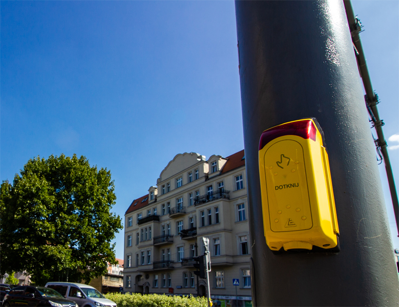 Ponadto w Poznaniu wykorzystywane są nowoczesne przyciski dla pieszych o poszerzonej funkcjonalności. Informują one o topografii przejścia, liczbie pasów ruchu do pokonania i kierunku, z którego nadjeżdżają auta. Posiadają również znacznie większą powierzchnię przycisku przyjmującego zgłoszenie pieszego oraz przycisk wibracyjny, powiadamiający o nadawaniu zielonego światła. Tego rodzaju przyciski funkcjonują obecnie w kilkunastu miejscach w mieście i są instalowane w kolejnych. Jednym z nich jest skrzyżowanie ul. Kościuszki i Libelta, na którym trwają prace związane z ich montażem. Zostaną tutaj również wymienione lampy w sygnalizatorach - zastąpią je oprawy LED.