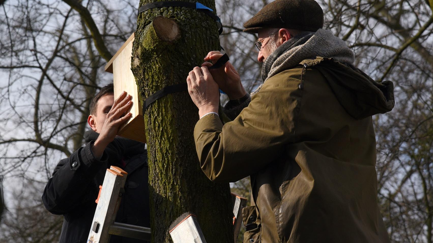 Pierwszą budkę uroczyście zawiesił w parku Sołackim pomysłodawca akcji - Tomasz Lewandowski, zastępca prezydenta Poznania, razem z prof. Piotrem Tryjanowskim z Uniwersytetu Przyrodniczego, która to uczelnia czuwa nad projektem.