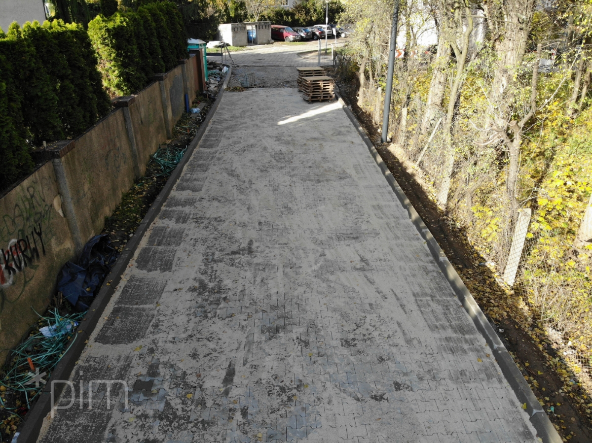 Budowana pieszojezdnia, czyli pas terenu przeznaczony dla ruchu pieszych i pojazdów na zasadach obowiązujących w strefie zamieszkania, bez wydzielonych chodników, ma mieć 5 metrów szerokości. Jej nawierzchnię tworzyć będzie betonowa kostka brukowa.