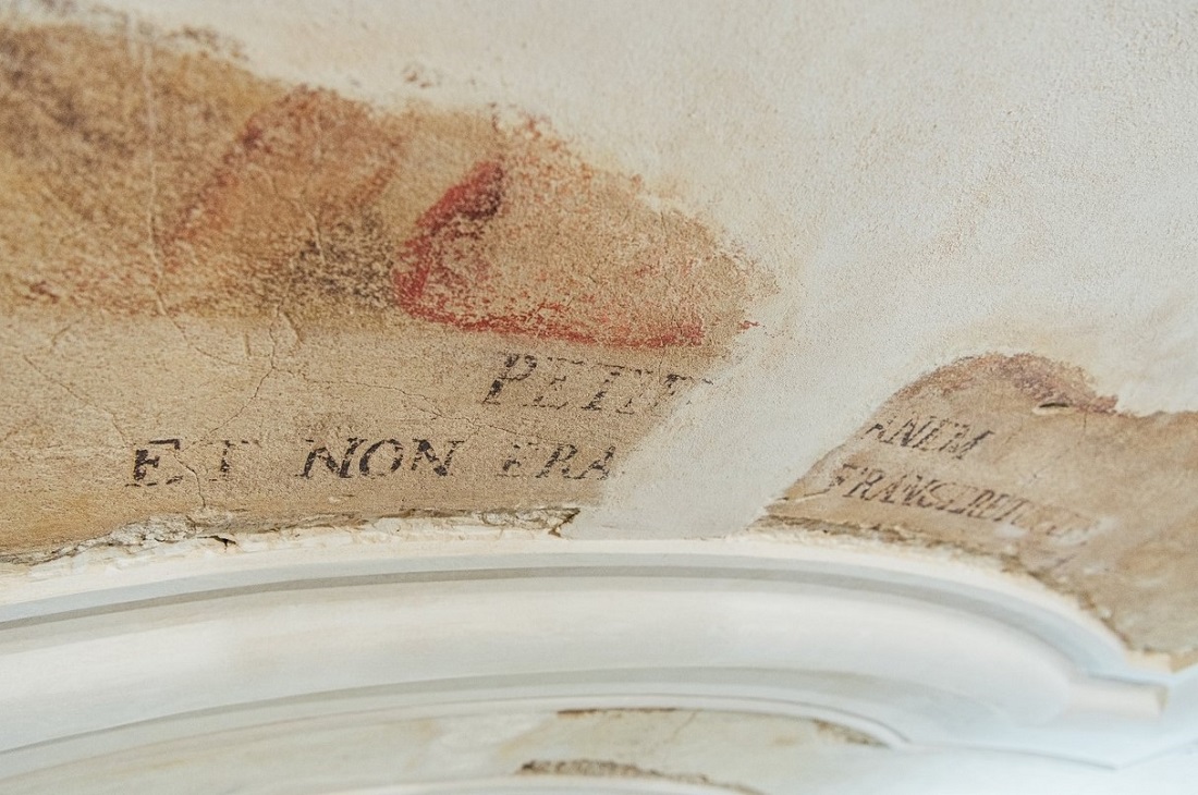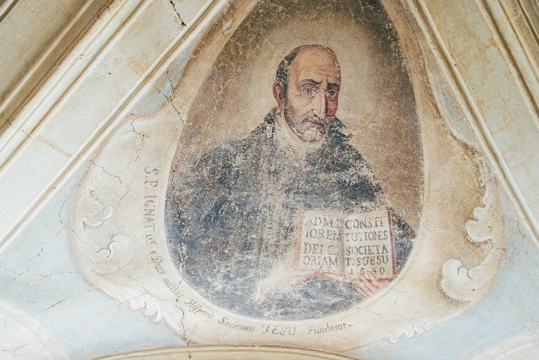 Sceny przedstawione na sklepieniu otoczone są wizerunkami 12 świętych jezuickich, umieszonych w tzw. lunetach - to m.in. Stanisław Kostka, Andrzej Bobola, Jan De Goto, Jakub Kisai, Franciszek Borgiasz, Alojzy Gonzaga czy Ignacy Loyola. Na spływach sklepienia namalowano jeszcze 11 medalionów z podobiznami kardynałów. Niespodzianką, na którą natrafili konserwatorzy, był duży ubytek, sugerujący, że pomieszczenie mogło być kiedyś podzielone na dwie części.