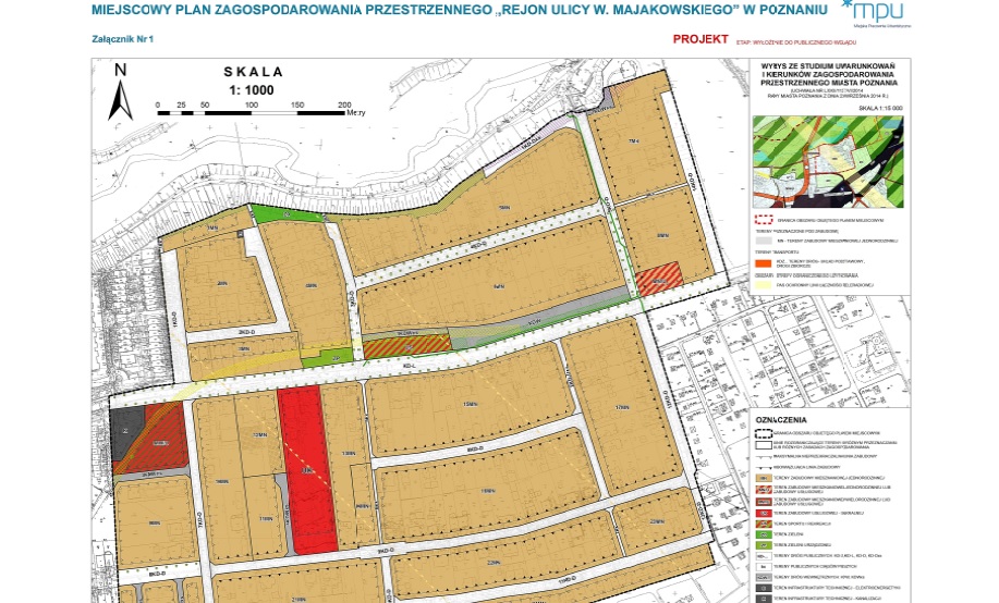 Pierwszym punktem porządku obrad był projekt uchwały w sprawie miejscowego planu zagospodarowania przestrzennego "Rejon ulicy W. Majakowskiego". Na tym terenie dominuje zabudowa jednorodzinna, większość działek jest własnością prywatną, jedynie drogi należą do miasta. Dopuszczona jest zabudowa wolnostojąca lub bliźniacza, niska, do 9 metrów. W jednym rejonie, w rejonie skarpy w dolinie Cybiny, Miejska Pracownia Urbanistyczna zezwala na niższą zabudowę, do 7 metrów wysokości i płaskie dachy.