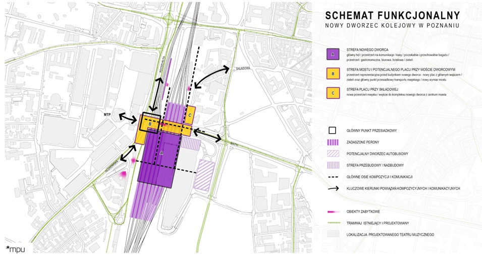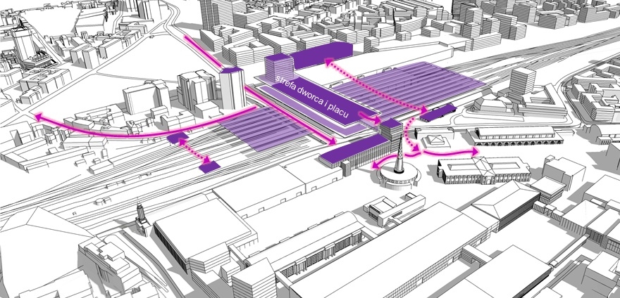 Przyszły węzeł kolejowy ma również być miejscem, po którym łatwo można się poruszać i do którego można wygodnie dojść i dojechać. Analiza prowadzona przez Miejską Pracownię Urbanistyczną, we współpracy z Biurem Koordynacji Projektów i Rewitalizacji, Miejskim Konserwatorem Zabytków, Wydziałem Urbanistyki i Architektury, Zarządem Dróg Miejskich, Zarządem Transportu Miejskiego oraz przy udziale PKP, wskazuje nowe rozwiązania, pozwalające wykreować powiązania zarówno z istniejącymi, jak i nowymi częściami miasta - np. z nową siedzibą Teatru Muzycznego czy rozwijającą się zabudową przy ulicy Składowej. Zachowane zostaną kluczowe kierunki dojścia do dworca z centrum, ale pojawią się także nowe - np. wygodne połączenie z terenem MTP. Nowy dworzec ma być nie tylko zintegrowany z miastem, ale również dobrze powiązany z transportem miejskim. Dodatkowo punkty przesiadek podróżnych, które obecnie są rozproszone, powinny zostać zlokalizowane w jednym, centralnym miejscu.