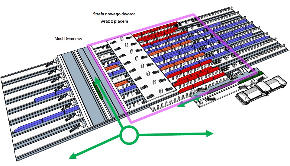 Układ torów i peronów ma zostać zaprojektowany od zera, bez powielania niefunkcjonalnych rozwiązań. W planach jest 8 peronów - każdy całkowicie przelotowy, z podwójnymi krawędziami. Całość będzie również dostosowana do potrzeb Poznańskiej Kolei Metropolitalnej oraz Kolei Dużych Prędkości - tak, by jej pociągi mogły się bez problemu zatrzymywać na najważniejszym miejskim węźle kolejowym.