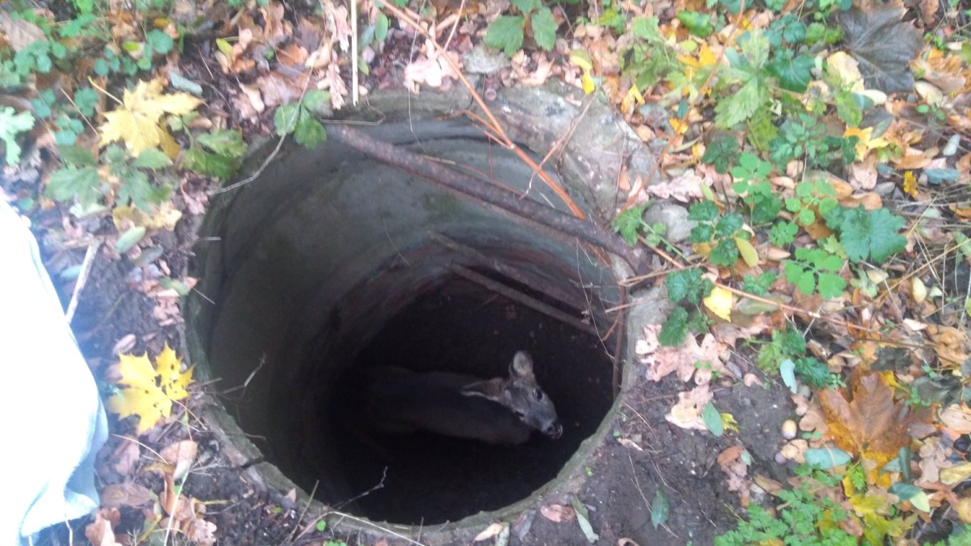 Pies jednego z mieszkańców Poznania podczas spaceru przy ul. Warszawskiej w parku okalającym cmentarz Miłostowo wyczuł sarnę. Okazało się, że dzikie zwierzę wpadło do niezabezpieczonej studzienki i nie mogło się z niej wydostać. Z pomocą przyszli funkcjonariusze z Eko Patrolu Straży Miejskiej, których wezwał na miejsce właściciel psa.
