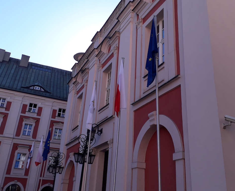 Flagi pojawiły się na dziedzińcu. Zostały wciągnięte na masz w konfiguracji zaproponowanej przez radnego. Tomasz Wierzbicki nie kryje zadowolenia i mówi, że Urząd od razy wygląda lepiej. Chciałby też, aby flaga Poznania była bardziej eksponowana w przestrzeni miejskiej, na przykład przed innymi wydziałami i instytucjami miejskimi.
