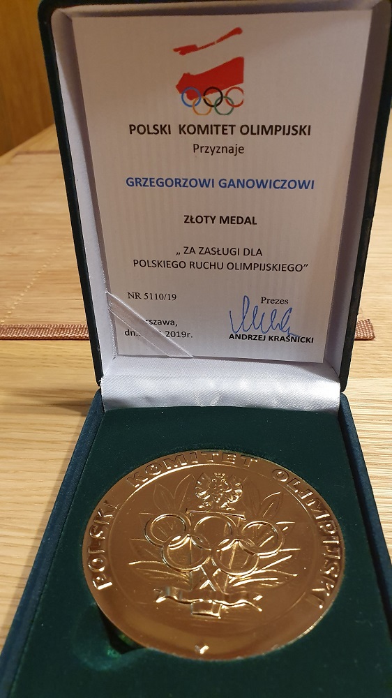 Przewodniczący Rady Miasta Poznania Grzegorz Ganowicz otrzymał z rąk prezesa Polskiego Komitetu Olimpijskiego Andrzeja Kraśnickiego, złoty medal za zasługi dla Polskiego Ruchu Olimpijskiego (nadawany przez Kapitułę PKOl).