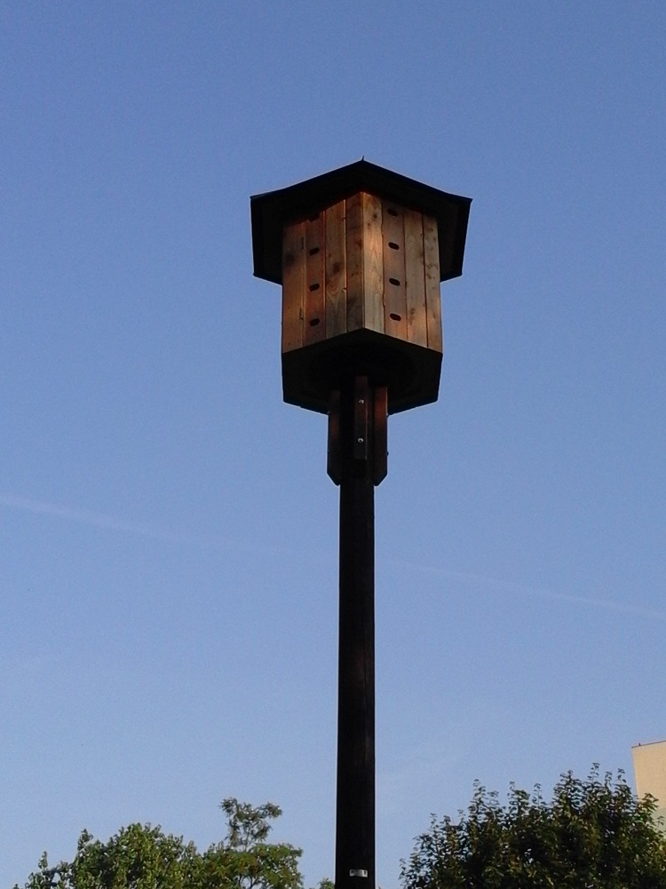 Na Chartowie sięgnięto po jeszcze inne rozwiązanie - mianowicie wolnostojącą budkę dla jerzyków na terenie Użytku Ekologicznego Traszki Ratajskie. Rada Osiedla Chartowo już w 2014 roku ujęła w swoim budżecie to zadanie, niestety przeznaczone na środki finansowe okazały się niewystarczające. W ubiegłym roku dzięki radnym Ryszardowi Musielakowi i Rafałowi Barbachowskiemu w budżecie Osiedl ponownie znalazło się to zadanie, a w lipcu od strony os. Tysiąclecia pojawił się domek dla jerzyków.