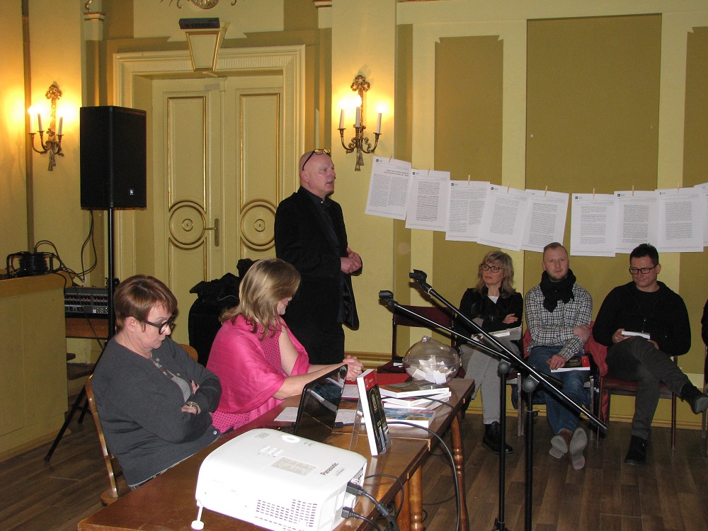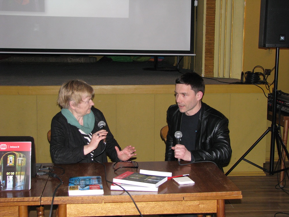 Później zaś publiczność miała okazję poznać Macieja Krajewskiego, znanego także jako Łazęga poznański, z którym rozmowę prowadziła Grażyna Wrońska z radia Merkury. Maciej Krajewski na co dzień jest pielęgniarzem w Wielkopolskim Centrum Onkologii przy ul. Garbary. Po pracy realizuje swoją wielką pasję jaką jest fotografia. Przemierza poznańskie ulice, zagląda do bram, podwórek, na klatki schodowe. Fotografuje miejsca czasem zaniedbane i zapomniane, ale noszące jeszcze ślady dawnej świetności, detale architektoniczne, zabytkowe drzwi i okna. Choć obecnie koncentruje swoją działalność artystyczną w pomieszczeniach przy ul. Święty Marcin, wiele zdjęć wykonał na Jeżycach. Jedno z nich znalazło się na okładce omawianego tomu Kroniki.