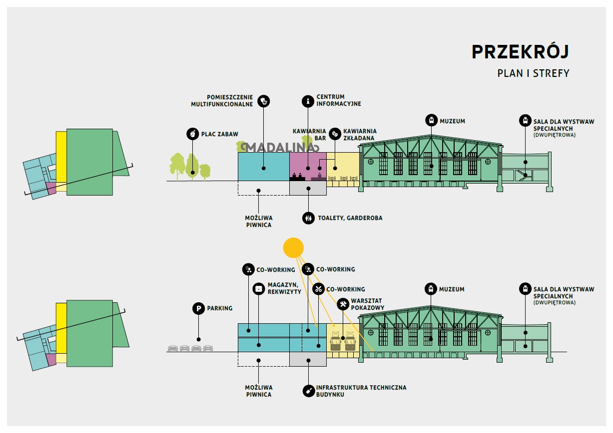 Projekt zakłada Madalinę jako współistniejące ze sobą muzeum i centrum kulturalno-społecznego. Powierzchnia przed zajezdnią miałaby pozostać niezabudowana, aby nadal pełnić funkcje otwarte, środowiskowe dla dzielnicy. Obok założono pomieszczenie wielofunkcyjne, które może być wykorzystywane na centrum multimedialne, prezentacje teatralne, imprezy taneczne. Przewidziano miejsce na punkt informacyjny, kawiarenkę. Kolejną atrakcją ma być warsztat pokazowy, w którym można by oglądać jak naprawiane są pojazdy zabytkowe. Sam projekt muzealny, zlokalizowany w największej hali zajezdni, zakłada pokazanie historii komunikacji Poznania w XIX i XX wieku z historycznymi pojazdami i strefami tematycznymi. Część powierzchni ma zostać przeznaczona na wystawy czasowe, które ożywiają muzeum i przyciągają nowych zwiedzających. Istotne, aby pojazdy historyczne mogły opuszczać zajezdnię, kiedy wykorzystywane są na wycieczki, czy parady z okazji świąt. Ważne też, aby wystawa nie koncentrowała się tylko na przeszłości, ale prezentowała pojazdy współczesne oraz wybiegała w przyszłość pokazując możliwe kierunki rozwoju komunikacji. Oferta musi być zróżnicowana, przyjazna rodzinom, osobom niepełnosprawnym. Austriaccy projektanci widzą możliwość skorzystania z dorobku i doświadczenia Klubu Miłośników Pojazdów Szynowych, który również deklarują współpracę.