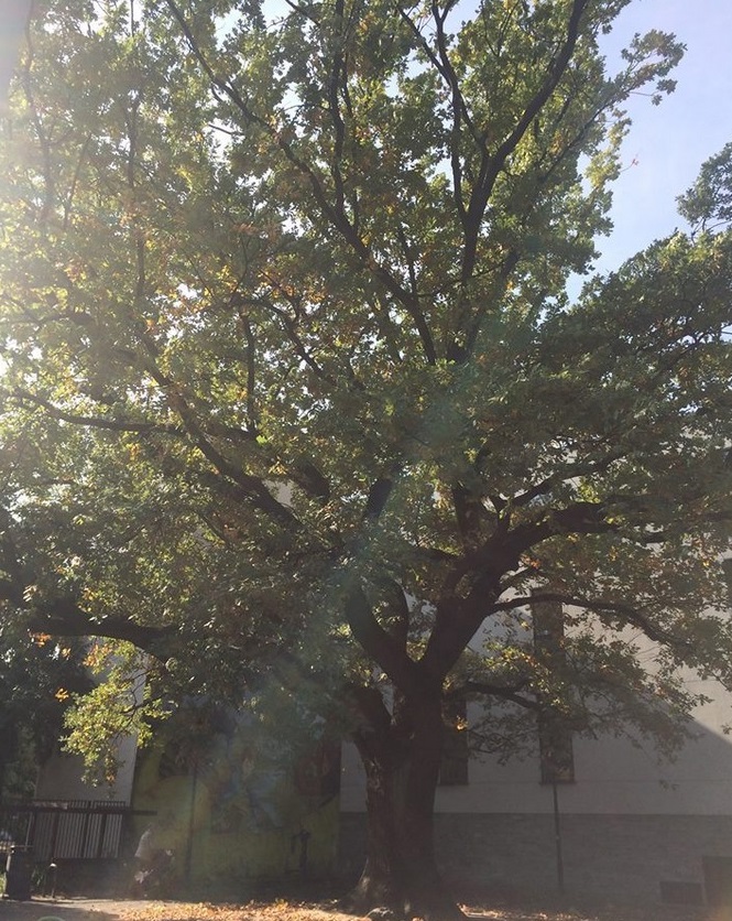 Wiek dębu szypułkowego rosnącego na placu zabaw u zbiegu ulic Prądzyńskiego i Garczyńskiego datuje się na około 250-300 lat. To oznacza, że drzewo pamięta jeszcze czasy sprzed rozbiorów Polski. Pomnikiem przyrody został ustanowiony 2 lata temu.