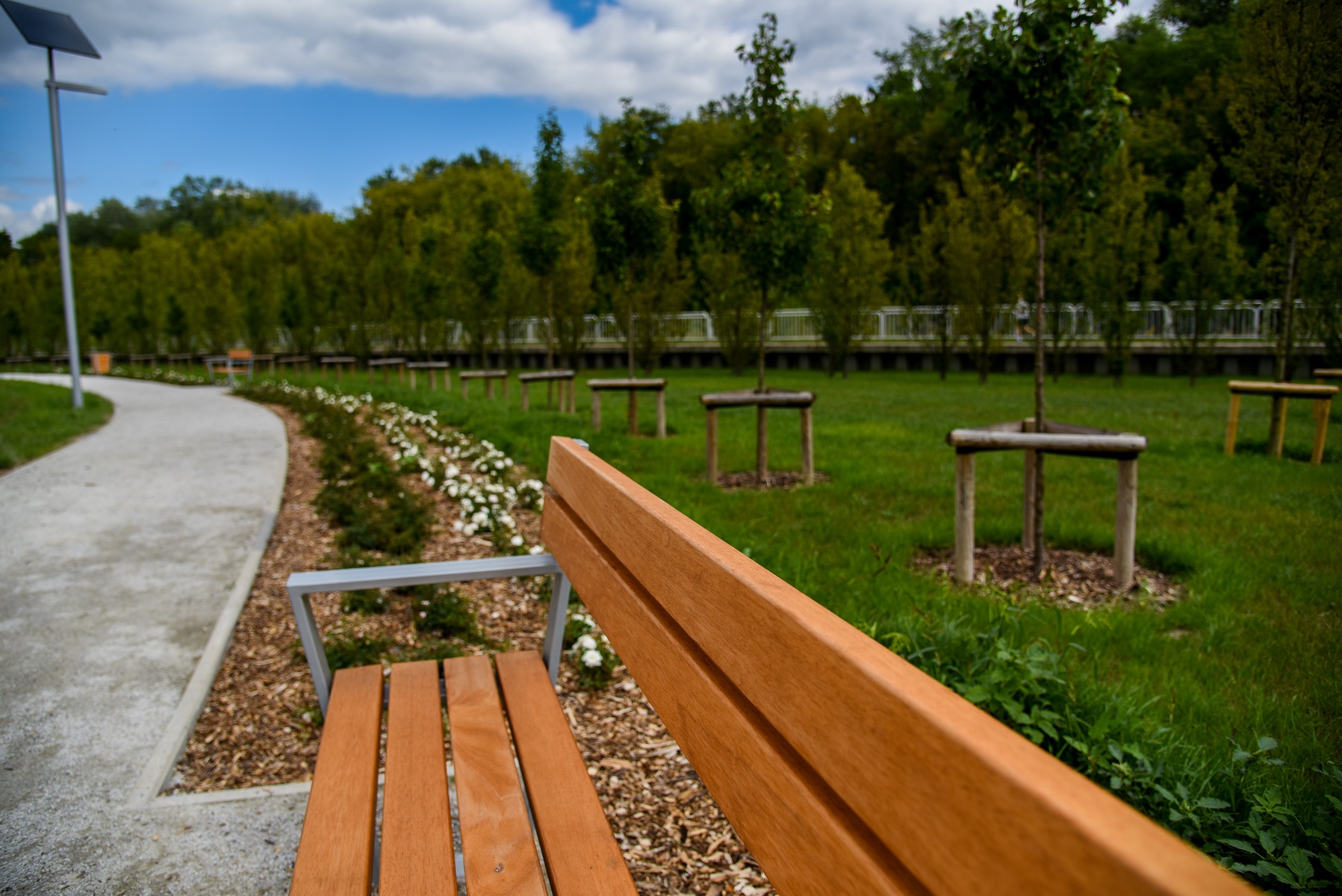 Teren parku od strony ruchliwej ulicy Dolna Wilda izoluje podwójny szpaler drzew. Całą przestrzeń oświetlają lampy solarne. Centralna i południowa część parku to miejsca dla rekreacji czynnej i biernej. Poznaniacy szukający ciszy i spokoju mogą tam odpocząć przy klombie z ozdobną rabatą, a miłośnicy spacerów i biegania mają do dyspozycji liczne przeplatające się alejki, wykonane z nawierzchni wodoprzepuszczalnej z kruszywa naturalnego.