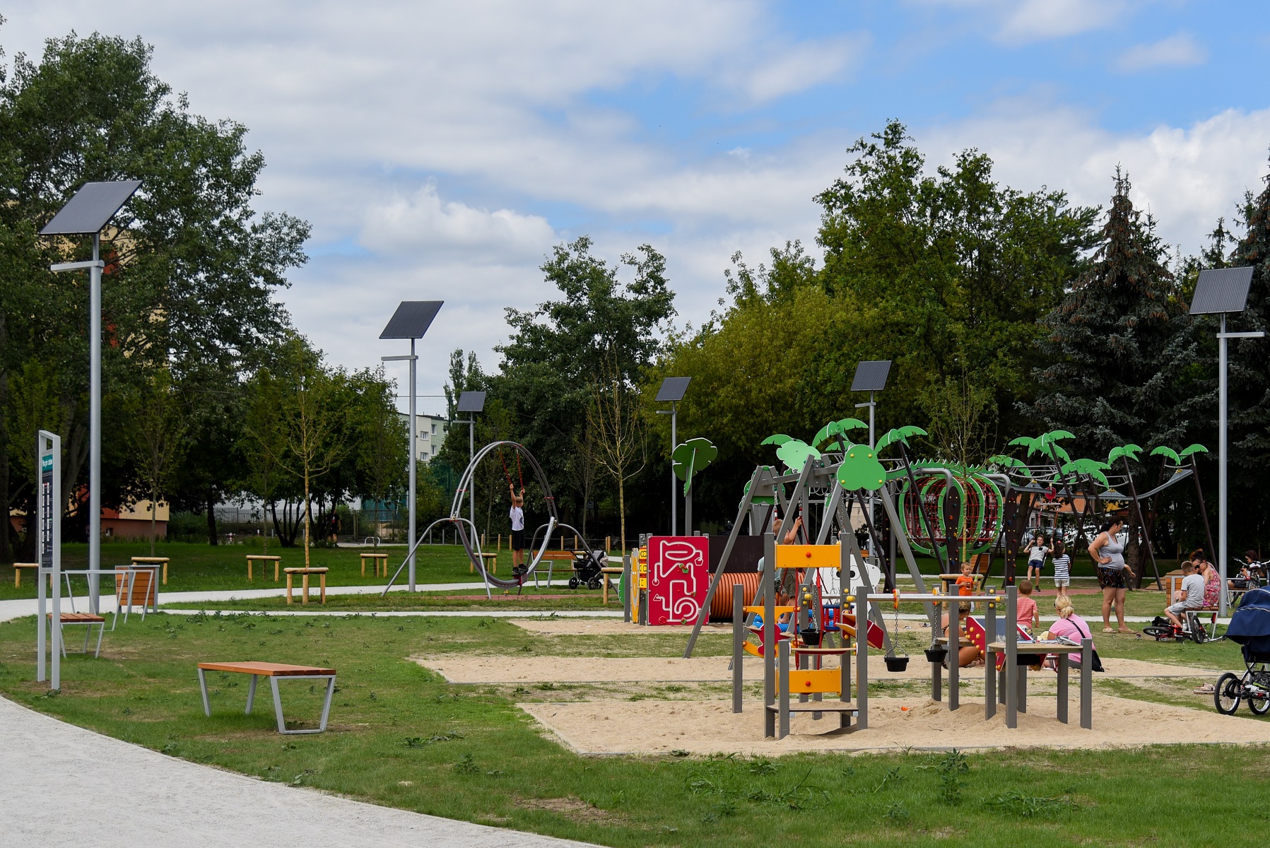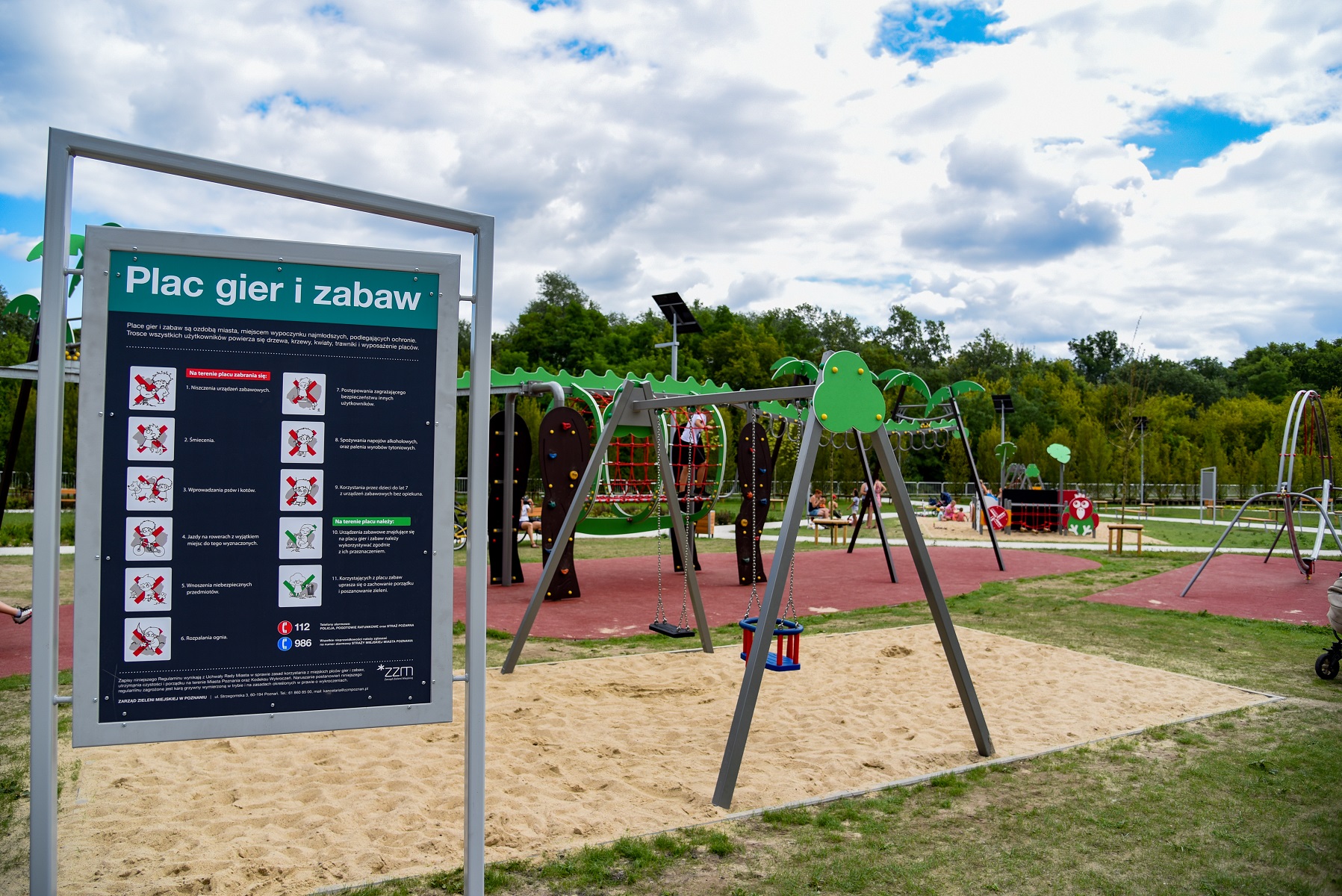 Zaprojektowano również strefę dla dzieci - a w niej plac zabaw, na którym znaleźć można m.in. huśtawki, ściankę wspinaczkową, drabinki oraz specjalne konstrukcje: "ważkę miejską" i "kosmicznego surfera". Na obrzeżach parku, w jego części północnej, zlokalizowany został tor agility z miejscem do wyprowadzania psów.