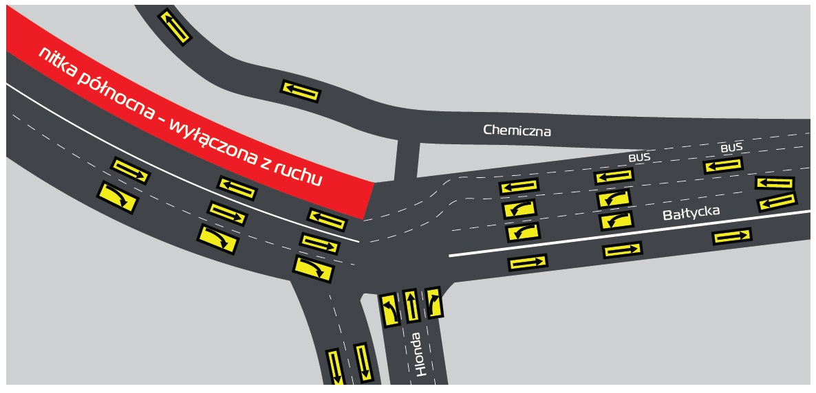 Szczegółowe informacje na temat zmienionej organizacji ruchu i związaną z tym konieczności zmiany jezdni i pasów ruchu na przylegających do mostu skrzyżowaniach pojawią się na tablicach umieszczonych 150 m przed skrzyżowaniami ul. Hlonda z ul. Bałtycką oraz ul. Serbskiej i ul. Lechickiej. Całość robót oraz dojazdy do istniejącego obiektu są w zasięgu oświetlenia ulicznego.