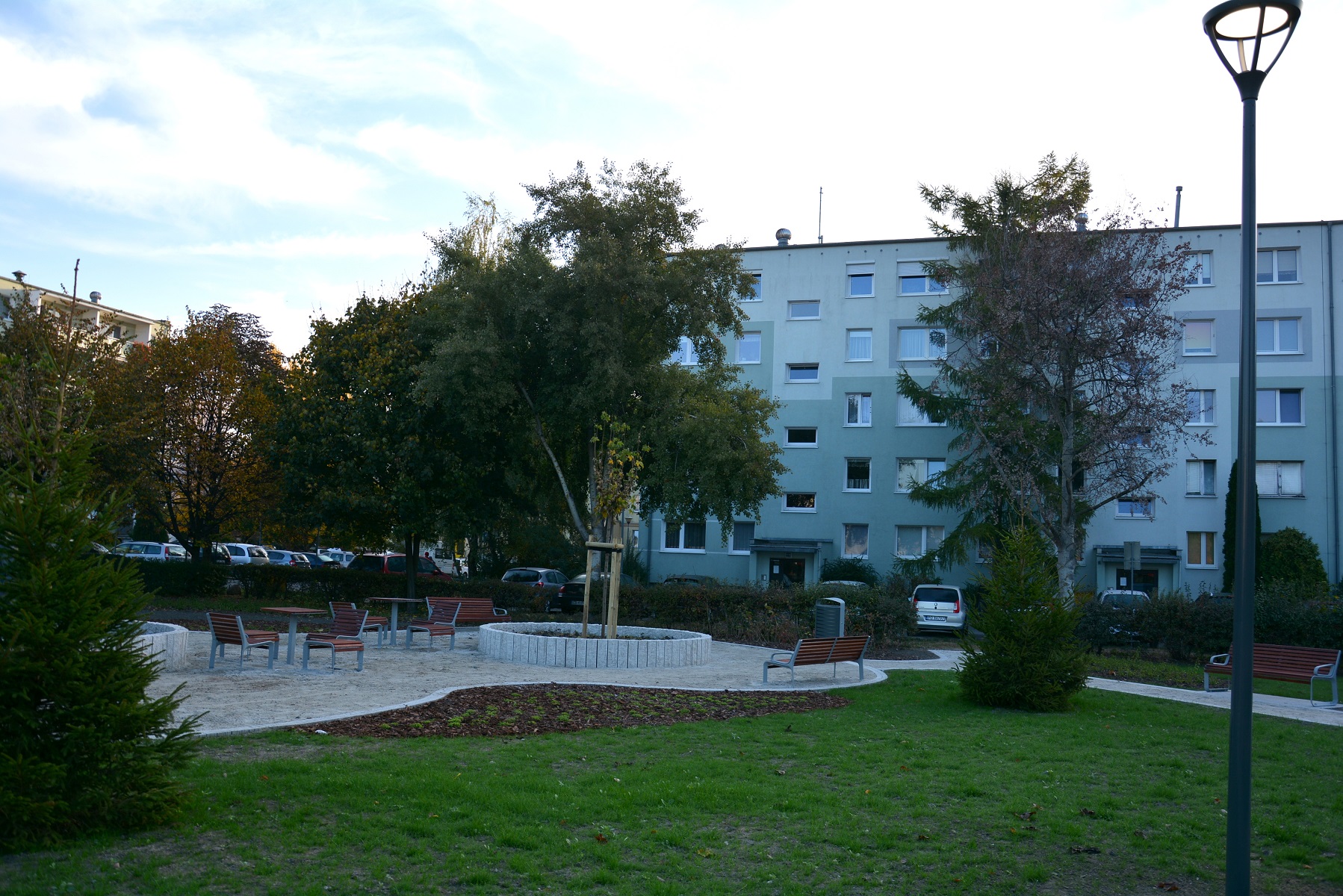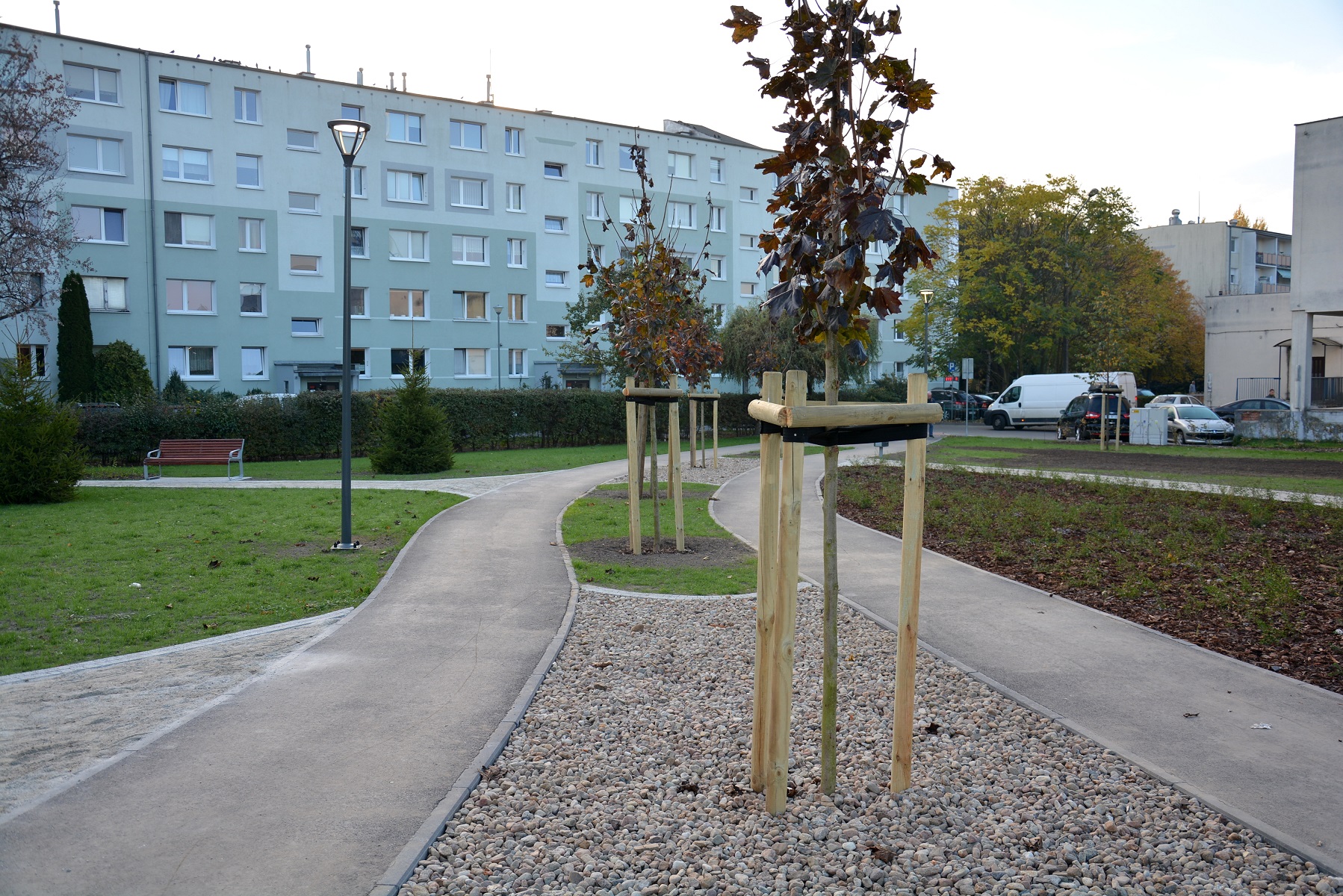 Teren uporządkowano z zachowaniem układu komunikacyjnego - w miejscu wydeptanej ścieżki powstała utwardzona alejka. Ustawiono ławki oraz kosze na śmieci. Wzdłuż głównego ciągu komunikacyjnego zainstalowano nowe oświetlenie, zagospodarowano też tereny zielone. W parku, do dyspozycji mieszkańców są m.in.stoliki z planszami do gry w szachy, postawiono także specjalną gablotę do wymiany książek i czasopism.