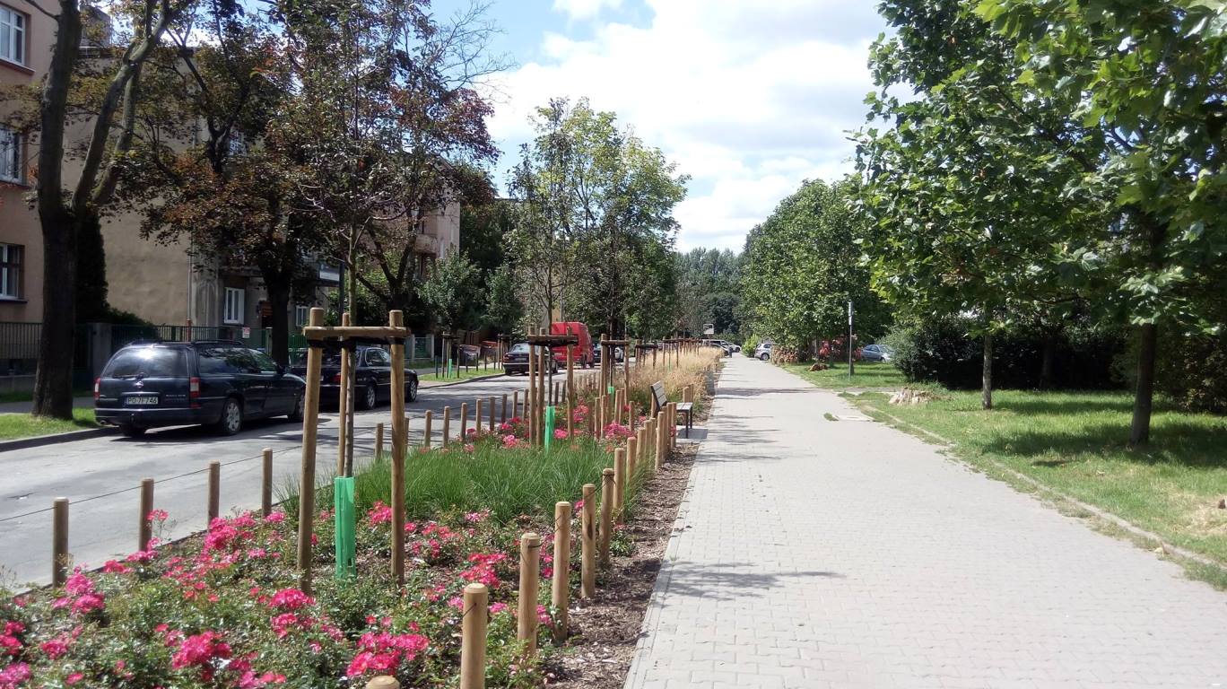 Wcześnie były to po prostu kolejne miejsca parkingowe, rozjeżdżone przez samochody pobocze i zniszczony chodnik. Po remoncie chodnika, wygrodzeniu terenu pod zieleń i zmianie organizacji parkowania Oddział Zieleni Zarządu Dróg Miejskich rozpoczął realizację przywracania w tym miejscu zieleni. Prace trwały od jesieni ubiegło roku do tegorocznej wiosny. Teraz widzimy już efekty w pełnej krasie.