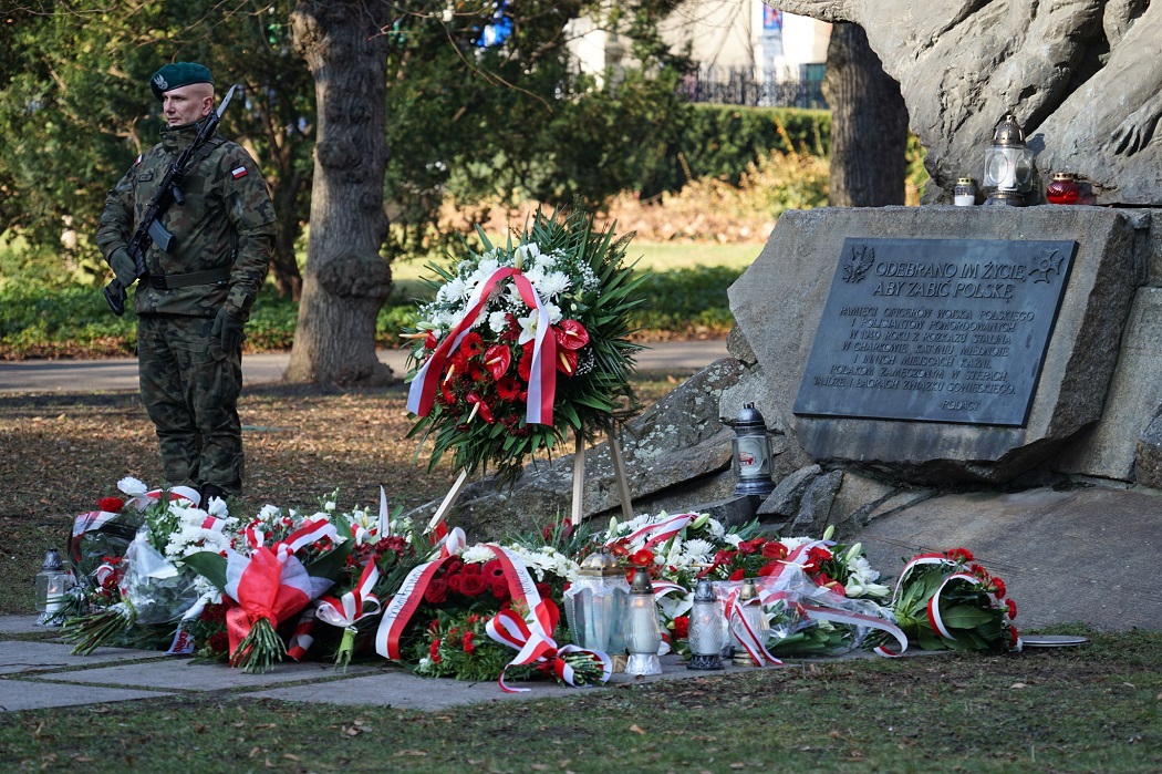 Podczas uroczyści pod Pomnikiem Ofiar Katynia i Sybiru, na terenie zielonym przy Centrum Kultury Zamek, wiązanki kwiatów złożyli m.in. przedstawiciele władz miejskich i wojewódzkich. W imieniu poznanianek i poznaniaków kwiaty pod pomnikiem złożył położył Grzegorz Ganowicz, Przewodniczący Rady Miasta Poznania.