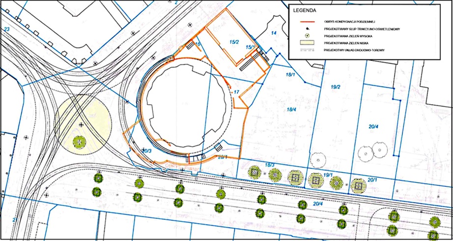 W odpowiedzi Miasto informuje, że realizując inwestycję, opierało się na dokumentacji wskazującej, że działki nr 20/3 i 20/4 stanowią własność Miasta. Działki te należały wcześniej do Skarbu Państwa i przeszły na własność Miasta Poznania na mocy decyzji Wojewody Wielkopolskiego z 8 i 16 października 2019 roku (Decyzje Wojewody Wielkopolskiego zostały wydane na podstawie art. 60 ust. 1 ustawy z dnia 13 października 1998 roku - Przepisy wprowadzające ustawy reformujące administrację publiczną). Opis budynku Okrąglaka zamieszczony w księgach wieczystych brzmi: "budynek handlowy konstrukcji szkieletowo-żelbetowej o budowie okrągłej z 2-piętrowymi piwnicami". W opinii Miasta taki opis nie wskazuje, aby piwnice znajdujące się na działkach 20/3 i 20/4 stanowiły jego część. Wręcz przeciwnie - okrągła bryła obiektu wskazuje, że piwnice powinny znajdować się w jego obrysie i mieć kształt okrągły.
