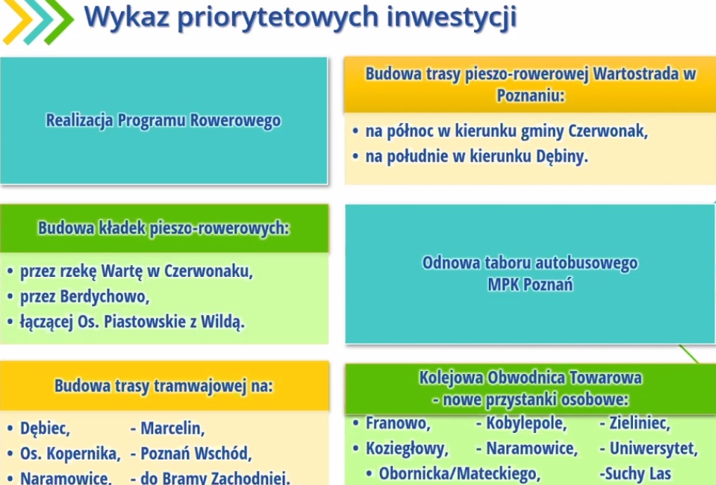 Miasto przygotowało też uchwały w sprawie Polityki Mobilności Transportowej Miasta Poznania oraz Planu Zrównoważonej Mobilności Miejskiej dla Miasta Poznania. "Polityka Mobilności" to dokument o charakterze strategicznym, przygotowany przez grupę ekspertów. Znalazły się w niej zapisy o poprawianiu standardów dostępności transportu publicznego, zmniejszaniu negatywnego wpływu transportu na miasto, pytaniu mieszkańców o opinię na temat kierunków rozwoju komunikacji publicznej, preferencjach dla pieszych i komunikacji publicznej, poprawie warunków i szybkości dojazdu na lotnisko, rozwoju stref ruchu pieszego, spójnej polityce parkingowej i inne.