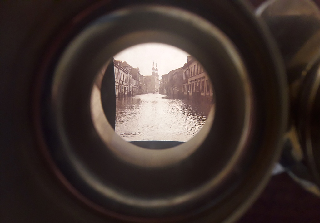 Oglądając najnowszą wystawę w Fotoplastykonie Poznańskim, przeniesiemy się w czasie, by zobaczyć, jak zmieniało się nasze miasto przez niemal 150 lat. Podróż rozpoczniemy od 1888 r., kiedy to pruskie wówczas miasto Posen nawiedziła jedna z największych w dziejach powodzi. Zniszczenia były pokaźne, ucierpiała znaczna część Starego Miasta, a stan wód osiągnął taką wysokość, że ulicę Garbary można było pokonać łodzią. Śladami, jakie pozostały po tym wydarzeniu do dzisiaj, są tabliczki znajdujące się przy ulicy Długiej i w kościele Bożego Ciała na Piaskach. Wysokość ich zawieszenia upamiętnia stan, jaki woda osiągnęła w trakcie powodzi (ponad 58 m n.p.m.).