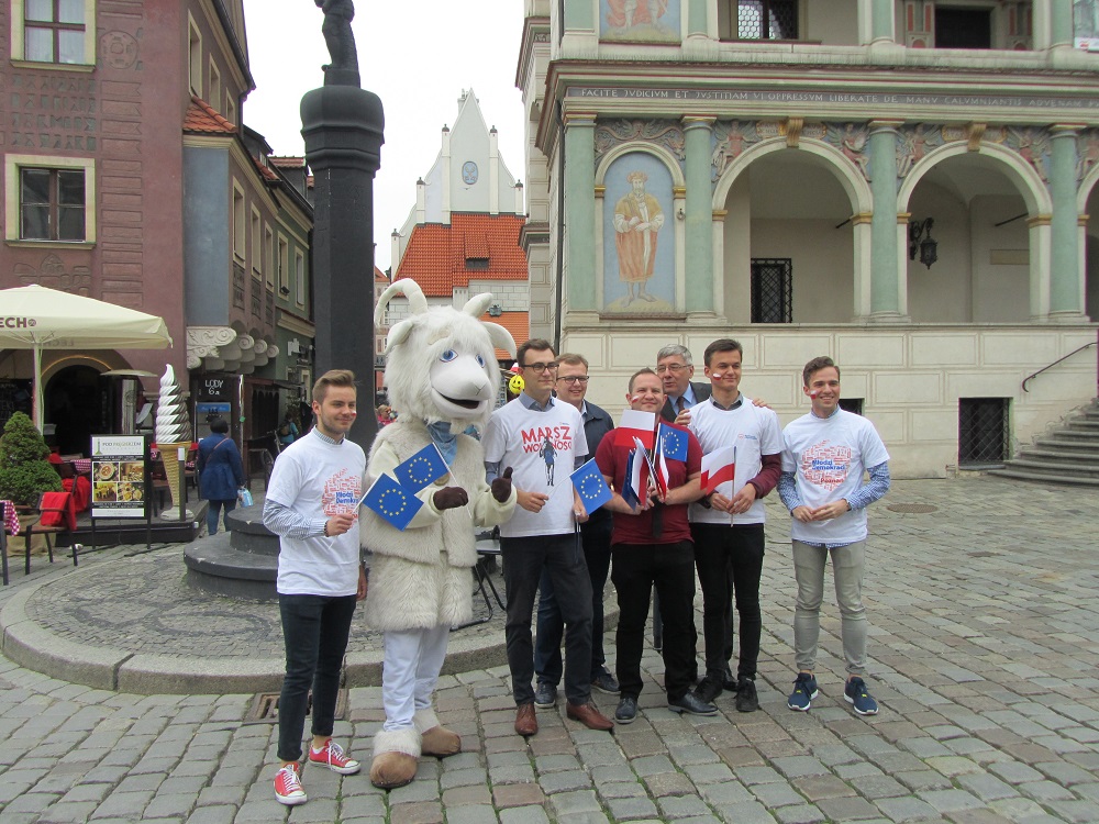 Ponieważ 1 maja minęła 14 rocznica przystąpienia Polski do Unii Europejskiej rozdawano także flagi unijne, aby podkreślić związek naszego kraju z UE i płynące z tego korzyści.