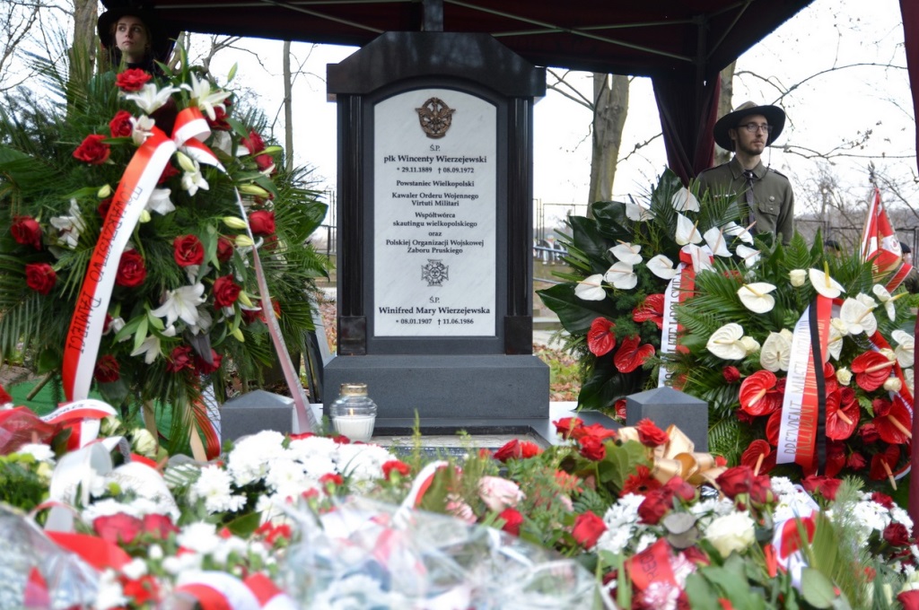 Wincenty Wierzejewski (1889-1972) był oficerem Wojska Polskiego, współtwórcą harcerstwa w Poznaniu oraz Wielkopolsce, założycielem i komendantem Polskiej Organizacji Wojskowej zaboru pruskiego. Studiował na Akademii Sztuk Pięknych w Krakowie. W latach 1910-1912 odbył służbę wojskową w armii pruskiej. Zmobilizowany w 1914 r. został wysłany na front zachodni, gdzie odniósł rany. W 1915 r. postanowił zdezerterować. W 1918 r. wziął udział w tzw. zamachu na ratusz w Poznaniu oraz rozpoczął tworzenie fundamentów pod regularne oddziały wojskowe. Zasłyną, jak twórca 1 kompanii skautowej, która była zalążkiem 1 Pułku Strzelców Wielkopolskich, pierwszej zorganizowanej jednostki bojowej armii gen. Józefa Dowbora Muśnickiego. Wojnę polsko-bolszewicką Wierzejewski spędził na froncie lwowskim. Został udekorowany Krzyżem Srebrnym Virtuti Militari.