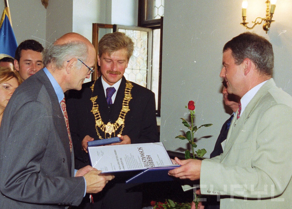 Wśród prawie 1700 zdjęć znalazły się też fotografie z uroczystej sesji Rady Miasta Poznania w 1999 roku. Wówczas tytuł Zasłużonego dla Miasta Poznania otrzymali m.in. Herbert Schmalstieg - nadburmistrz Hanoweru (partnerskiego miasta Poznania) i Harald Böhlmann - kierownik Wydziału Kultury Urzędu Miasta Hanower. Na zdjęciach tytuły honorowe wręczają ówczesny prezydent Poznania Ryszard Grobelny i będący wówczas przewodniczącym Rady Miasta Dariusz Lipiński. Rozpoznać można też wielu ówczesnych radnych i wiceprezydentów.