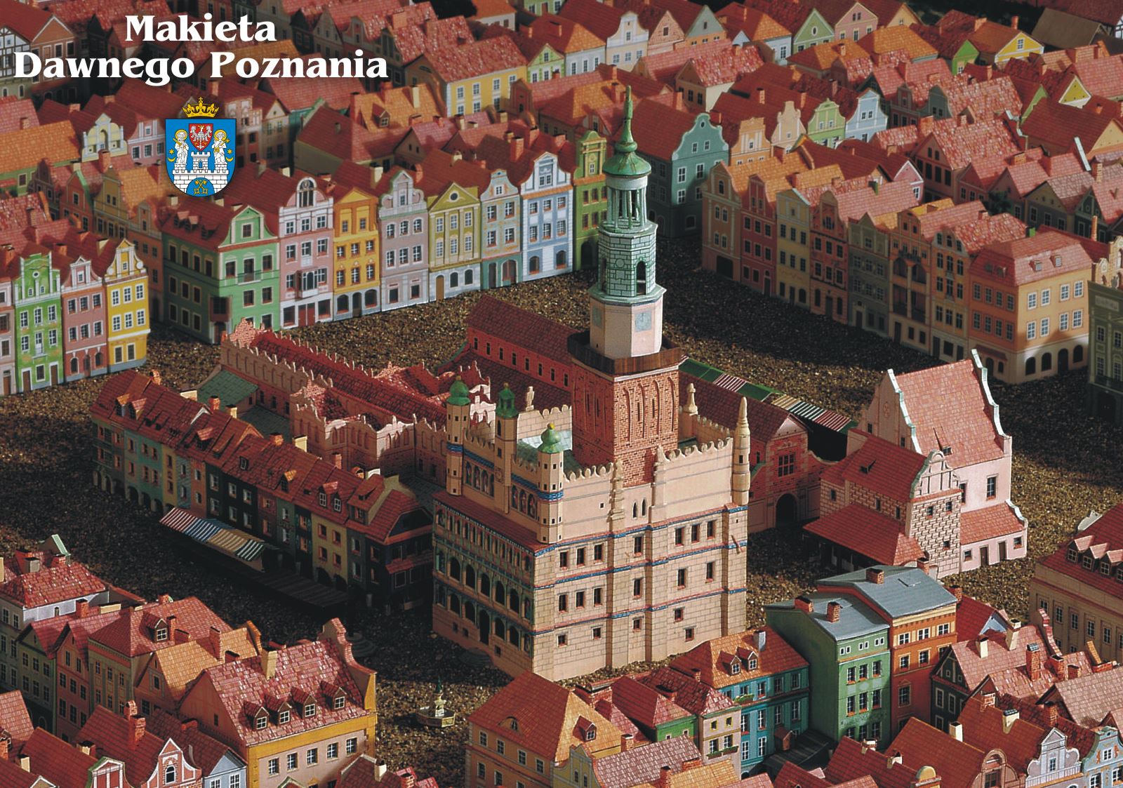 Druga makieta pokazuje zabudowę średniowiecznego miasta, jakie przedstawione zostało na rycinie w Civitates orbis terrarum - atlasie miast świata Brauna-Hogenberga z 1618 roku. Poprzedzona gruntownymi studiami nad historią dawnego Poznania, benedyktyńska praca przy wykonaniu tej makiety zajęła panu Krzysztofowi Przybyle (autorowi obu makiet) całe 6 lat. Makieta jest w skali 1:150 (dla lepszego wyobrażenia sobie skali przypomnę, że 1 cm na makiecie odpowiada 150 cm w rzeczywistości, oznacza to, że na przykład wieża nieistniejącego już kościoła na placu Kolegiackim, która na makiecie ma ponad pół metra wysokości, w rzeczywistości miała około 90 metrów). Na powierzchni 50 m kw. ustawiono prawie 2300 obiektów wykonanych z papieru, modeliny, plastiku oraz innych materiałów modelarskich. W miniaturowym Poznaniu "rośnie" też 2000 drzew. Specjalne tworzywa do złudzenia imitują trawę, pola podmiejskich wsi oraz wody Warty, Cybiny, Głównej i Bogdanki, które widziane z lotu ptaka pozwalają docenić rolę tych rzek w topografii i obronności miasta. Widowisku światła i dźwięku, przedstawiającemu historię Poznania od powstania grodu na Ostrowie Tumskim, przez lokację i rozwój miasta na lewym brzegu Warty, aż po czasy rozbiorów, towarzyszy komentarz dostępny także w języku niemieckim, angielskim, hiszpańskim, francuskim, włoskim i rosyjskim. Wierność w oddaniu detali architektonicznych oraz wiele drobiazgów zauważalnych już po chwili obserwacji makiety sprawia, że miniaturowy Poznań żyje życiem swoich mieszkańców - jest "jak prawdziwy". Warto porównać makietę z widokiem współczesnego Poznania - z wieży pobliskiego zamku królewskiego.