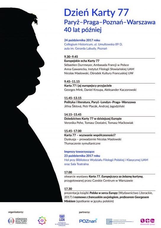 24 października Instytut Filologii Słowiańskiej Uniwersytetu im. Adama Mickiewicza w Poznaniu oraz Ośrodek Kultury Francuskiej w Warszawie organizują spotkanie naukowe "Dzień Karty 77". W spotkaniu udział wezmą zarówno wybitni naukowcy, badający tematykę opozycji demokratycznej w krajach dawnego bloku wschodniego, jak i przede wszystkim świadkowie historii - ludzie, którzy Kartę 77 inspirowali, tworzyli, publikowali, kolportowali w Czechosłowacji i na świecie, często wybierając los politycznych banitów, prześladowanych i więzionych przez komunistyczne władze. W założeniu spotkanie ma przypominać korzenie Karty 77, historię powstania samego dokumentu oraz dzieje środowisk, z których Karta 77 się wywodziła.