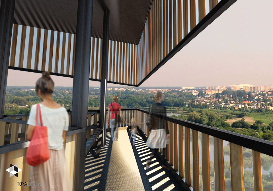 22-metrową budowlę z tarasem widokowym o powierzchni 14 metrów kwadratowych zaprojektowali architekci z biura projektowego Toya Design. Wieża będzie wyposażona w system monitoringu. Stanie koło cegielni na Fabianowie przy Stawie Glabisia i Rozlanym.