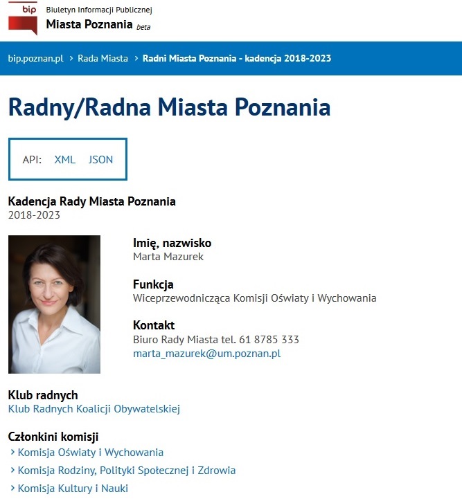 W zakładce prezentującej sylwetki radnych oraz m.in. ich członkostwo w komisjach merytorycznych, dotychczas tak dla kobiet jak i mężczyzn zapis brzmiał "członek komisji". W przypadku radnej Marty Mazurek zapis został zmieniony na: "członkini komisji". Na razie nie zmieniono zapisu dla pozostałych pań radnych.