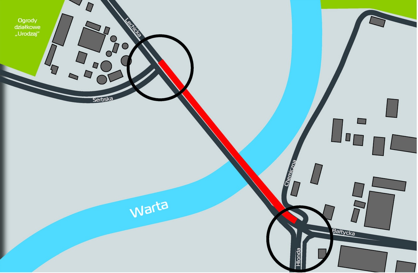Podczas prowadzonych robót kierowcy wjeżdżający na most od strony ul. Lechickiej i Serbskiej będą musieli zwolnić do 30 km/h, by bezpiecznie zjechać na dwa prawe pasy prowadzące na wprost, w stronę ul. Bałtyckiej (dalej m.in. do Czerwonaka czy Swarzędza). Ze skrajnego prawego pasa, po pokonaniu mostu, będą mogli zjechać w ul. Hlonda.