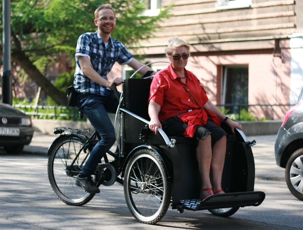 Udało się już pozyskać specjalną rikszę z wygodną kanapą z przodu dla seniorów i małym wspomaganiem elektrycznym dla prowadzących z tyłu. Riksza jest przemyślana w najdrobniejszych detalach i jeździ się nią nawet łatwiej niż zwykłym rowerem. Mogą nią kierować nie tylko osoby bardzo sprawne fizycznie.