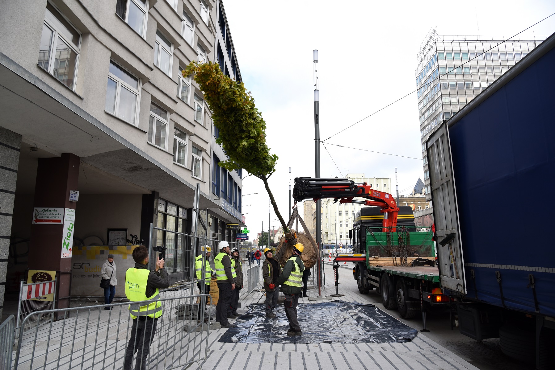 Zgodnie z harmonogramem 2 października na ul. Św. Marcin przywieziono drzewa by posadzić je po częściowo wykończonej już części ulicy, wzdłuż kamienic. Stanie tu czternaście kilkumetrowych drzew. Po stronie Alf prace jeszcze trwają, ale drzewa pojawią się tam w najbliższych tygodniach.