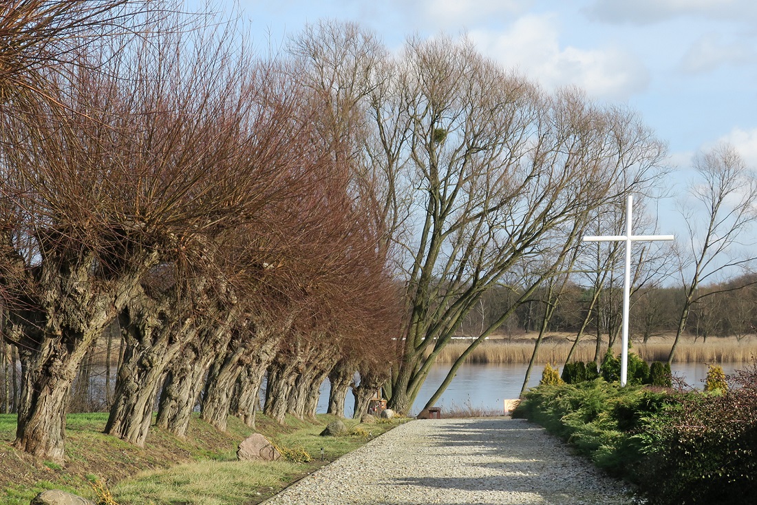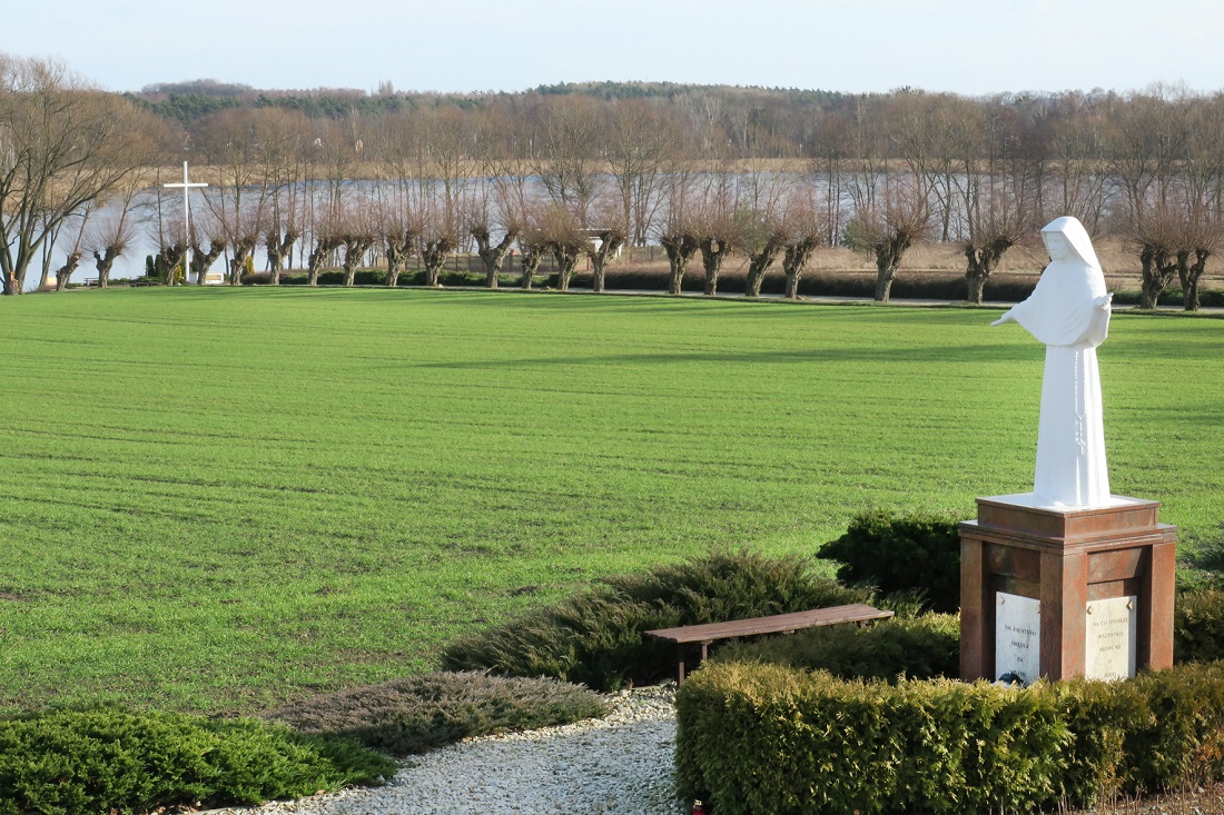 Dzięki staraniom sióstr przed kilku laty odbudowano ścieżkę, którą św. Faustyna chodziła nad jezioro, gdzie doświadczyła spotkania z Panem Jezusem. Krótki, malowniczo położony szlak spacerowy o charakterze medytacyjno-modlitewnym, wzdłuż którego rosną wierzby pamiętające zapewne pobyt św. Faustyny, jest wysypany żwirem i wyposażony w ławki oraz zieleń parkową. Na początku ścieżki znajduje się figura św. Faustyny, dalej przez mostek Jana Pawła II z tablicami pamiątkowymi i wzdłuż drogi krzyżowej dochodzi się do drzewa, przy którym miało miejsce objawienie (umieszczono tam obraz Miłosierdzia Bożego i zdjęcie Świętej, a pielgrzymi powiesili liczne różańce). Obok, między ołtarzem polowym a jeziorem, znajdują się ławki z widokiem na toń jeziora, zachęcające do modlitewnego skupienia i lektury: "To wszystko dla ciebie stworzyłem, oblubienico moja, a wiedz o tym, że wszystkie piękności niczym są w porównaniu z tym, co ci przygotowałem w wieczności" (Dzienniczek, n. 158).