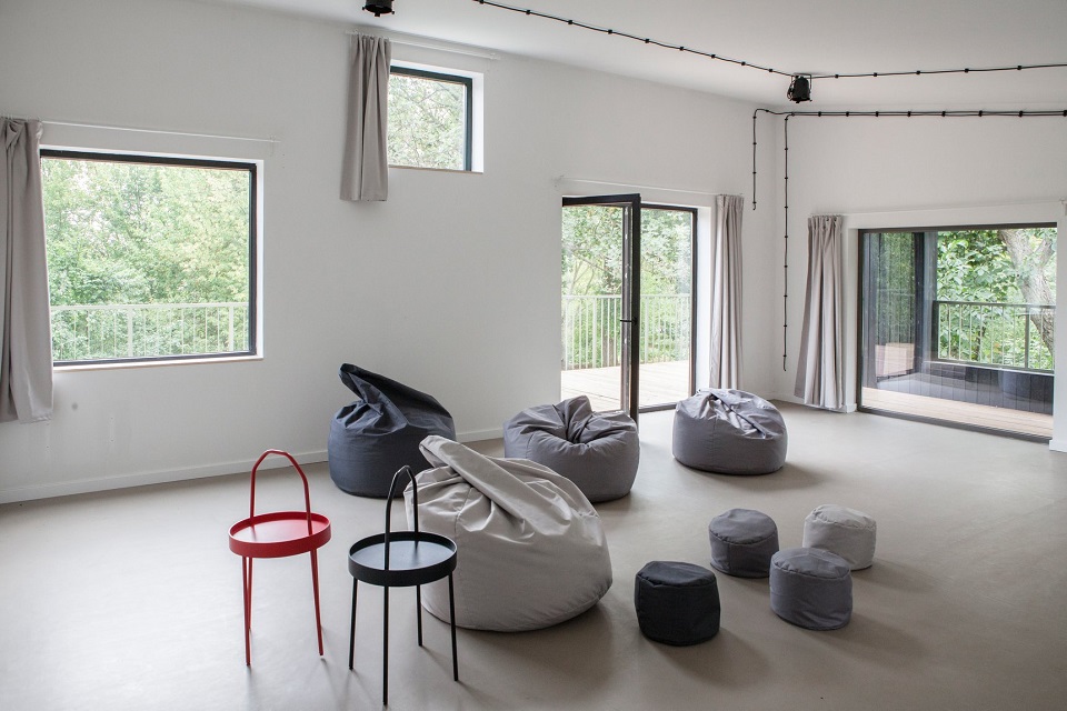 Budynek świetlicy został tak zaprojektowany, aby zdominował przestrzeni, nie był krzykliwy, ale przeciwnie wkomponował się w otaczającą go zieleń. W środku budynek urządzony jest skromnie, ale bardzo estetycznie.