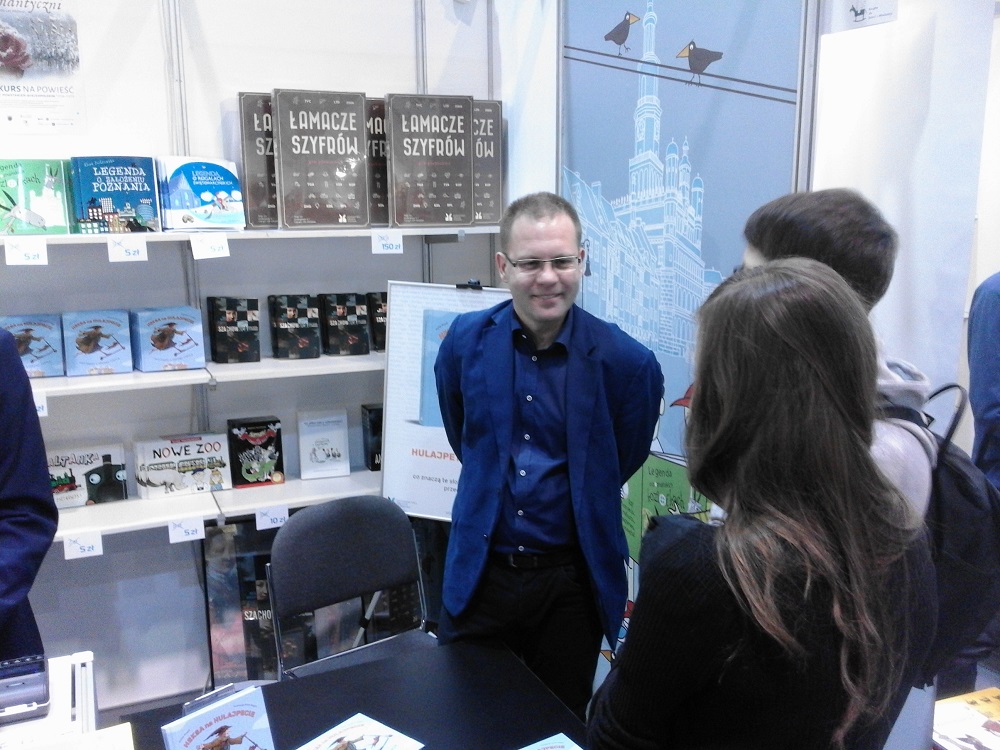 Na targach Książki dla Dzieci, Młodzieży i Rodziców Książki dla Dzieci i Młodzieży nasze stoisko (szczęśliwa 13) nie narzekało na brak zainteresowania ze strony małych i dużych czytelników. Nasi autorzy: Maja Rausch ("Szachownica, czyli sztuka rozpoznania") i Rafał Rosół "Heksa na hulajpecie, czyli fraszki z naszego fyrtla" podpisywali książki. Był też nasz specjalista od gier Szymon Dąbrowski, autorem najnowszej gry planszowej "Łamacze szyfrów". Na dużej scenie czytano dzieciom legendy Poznani i Brna (po polsku i trochę po czesku, był więc przy okazji mały kurs języka naszych południowych sąsiadów). Dziękujemy wszystkim, którzy odwiedzili nasze stoisko.