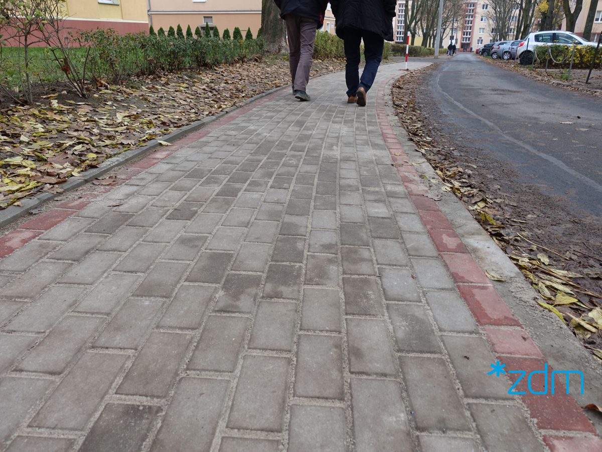 Biegnący wśród wielorodzinnej zabudowy chodnik wymagał naprawy. Zniszczone i nierzadko połamane płyty chodnikowe i krawężniki utrudniały chodzenie szczególnie seniorom i rodzicom z małymi dziećmi.