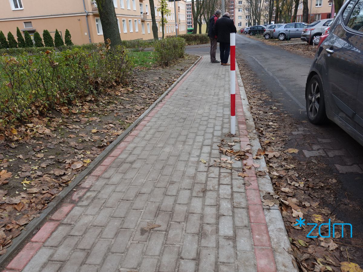 Nowy chodnik zabezpieczono również przed najazdem przez samochody. Na wysokości progu zwalniającego znajdującego się na jezdni zamontowany został biało-czerwony słupek, który ma powstrzymać kierowców przed omijaniem progu i wjeżdżaniem na chodnik. Takie zachowanie kierujących pojazdami nie tylko niszczy wyremontowaną nawierzchnię, ale również zagraża pieszym.