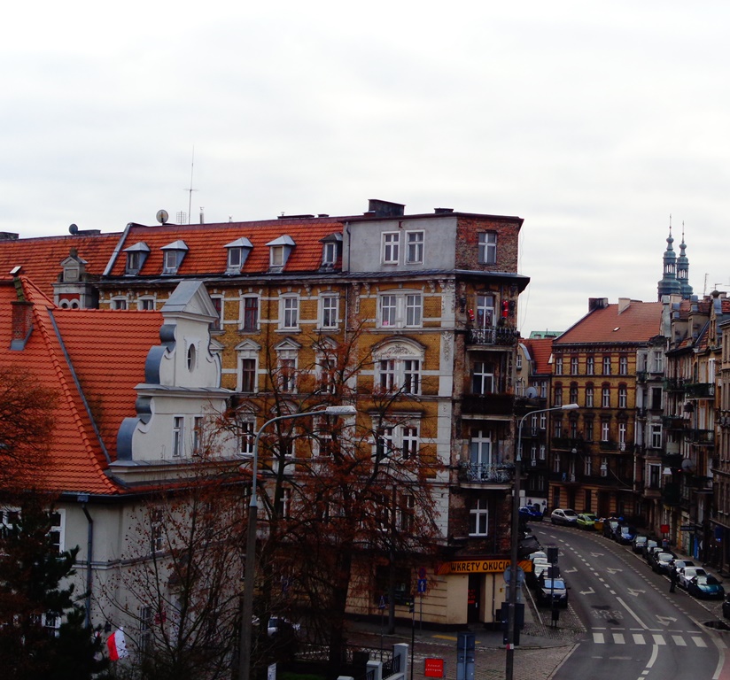 Inny charakter ma ostatni, północny odcinek Mostowej, po wschodniej stronie którego otwiera się przestrzeń niemal parkowa, jaką jest urządzona zieleń przed masywną bryłą dawnego kościoła ewangelickiego św. Krzyża, dziś - rzymskokatolickiego pw. Wszystkich Świętych, wzniesionego jeszcze w XVIII wieku w stylu rokoko-empire, z projektu Antoniego Höhne, ojca słynnego filozofa Józefa Hoehne-Wrońskiego. Na starych fotografiach widać, jak głębokie w stosunku do dzisiejszego poziomu jezdni ulicy Mostowej było koryto owej Zgniłej Warty. Oddzielał je od brzegu, przy którym protestanci wznieśli swój kościół wysoki mur oporowy o funkcjach przeciwpowodziowych, wzmocniony szkarpami.