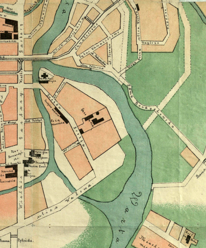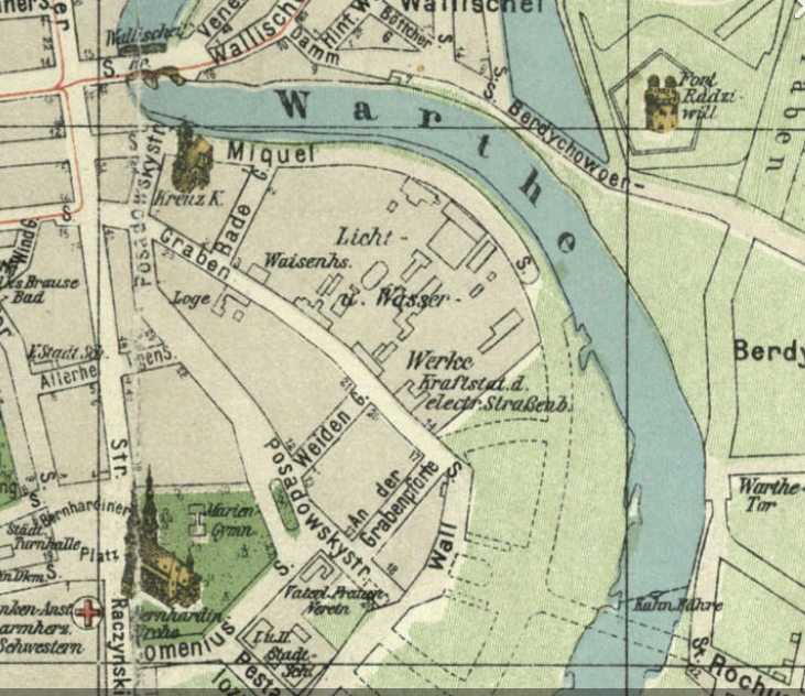 Później podobne umocnienia powstały po regulacji koryta Warty w tzw. zakolu chwaliszewskim, w chwili zasypania sąsiedniej Zgniłej Warty. Zbudowano wtedy bulwar Miquela, upamiętniający pruskiego polityka Johanna von Miquela. Dziś jest to ulica Ewangelicka, będąca niemal bliźniaczą w stosunku do Mostowej ulicą - otacza dawną wyspę Groblę jako łuk z drugiej strony (od północy i wschodu), biegnąc równolegle wzdłuż zasypanego w okresie powojennym koryta Warty. pozostały jeszcze na terenie tzw. Starej Gazowni pozostałości dawnego, środkowego przebiegu ulicy Ewangelickiej, ze starym brukiem, a być może nawet i torów kolejki, która jeszcze po wojnie woziła tu węgiel z przeładowni przy dworcu kolejowym na Garbarach.