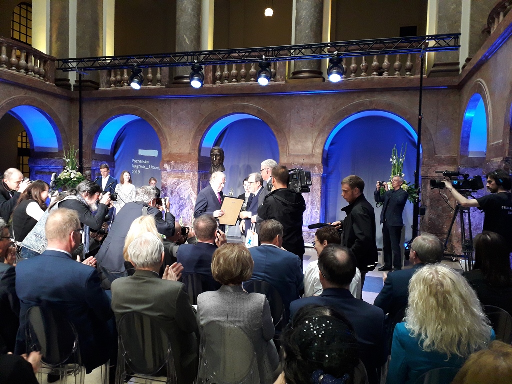 Odbierający nagrodę Wiesław Myśliwski wspominał swoje pierwsze wrażenia z Poznania: - To był mój pierwszy w życiu pobyt w wielkim mieście, państwa jeszcze wtedy nie było na świecie. Miałem 15, może 16 lat, byłem w gimnazjum. Samorząd szkoły w Sandomierzu wysłał nas wtedy na Targi Poznańskie - mam nawet zdjęcie z tamtego dnia - ze schodów opery, na którym ledwo się poznaję, ale jestem pewien, że to ja. Od czasu do czasu na nie popatruję. Tamten sentymentalny pobyt w Poznaniu spinam w całość z tym obecnym.