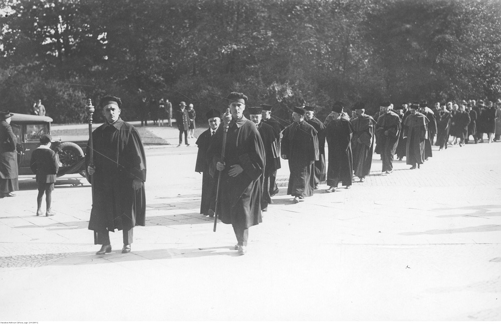W wypełnionej szczelnie, także przez "uczniów nowej Wszechnicy", katedrze wysłuchali oni kazania ks. prałata Stanisława Łukomskiego, po czym uformowano wielotysięczny pochód z orkiestrą i zastępem skautów na czele, który przemierzając ulice: Chwaliszewo, Wielką, Stary Rynek, Nową, plac Wolności, Kościuszki, Mielżyńskiego i Święty Marcin, obrał za swój cel dawny zamek cesarski. Tam w byłej sali tronowej, w obecności ponad tysiąca osób przemawiali nie tylko abp E. Dalbor, komisarz NRL Adam Poszwiński, rektor H. Święcicki czy mister J. Łukasiewicz, ale także przedstawiciel "młodzieży akademickiej Wszechnicy Piastowskiej p. Mikołajczak" oraz reprezentantka związku akademiczek "Universitas" dr Ludwika Dobrzyńska-Rybicka. Rektor H. Święcicki zwrócił się skądinąd wprost do młodzieży: "Macie, młodzi przyjaciele, wykształcić się w Uniwersytecie, nie tylko naukowo, lecz nie mniej kształcić się macie na dobrych obywateli kraju, bo macie być później apostołami świętej naszej sprawy, Ojczyzny naszej nadzieją". Z kolei minister Łukasiewicz w swej zwięzłej wypowiedzi zarysował w istocie program uniwersytetu i najważniejsze zadania przed nim stawiane: "Wszechnica Piastowska ma zastąpić młodzieży polskiej Berlin i Wrocław. Niech nie tylko zastąpi, ale przewyższy uniwersytety niemieckie. Niech da młodzieży naukę, owianą duchem narodowym. [...] Niech młodzież niesie wysoko sztandar nauki i stanie się ośrodkiem kultury dla zachodnich kresów Rzeczypospolitej".