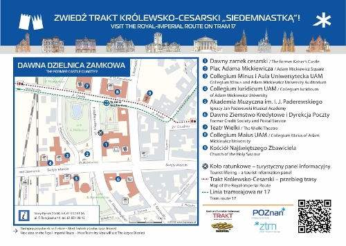 Trasa "siedemnastki" biegnie wzdłuż Traktu Królewsko-Cesarskiego. Podróżując nią na odcinku Rondo Śródka - Rynek Jeżycki pasażer tramwaju zobaczy najważniejsze poznańskie zabytki. Na przystankach "siedemnastki" umieszczono już wyposażone w QR-kody mapy najciekawszych wycieczek po okolicy danego przystanku. Znajdują się one obok rozkładów jazdy.