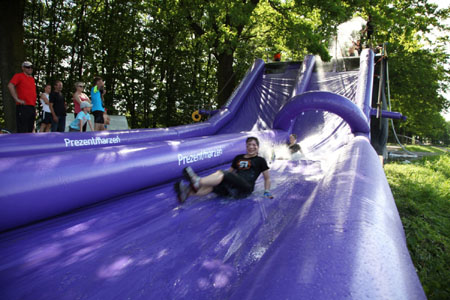Water Slide sprowadzony do Polski przez serwis Prezentmarzeń to pierwszy, mobilny, tak długi "slide", na którym uczestnicy mogą zjeżdżać na długości aż 100 metrów. Dzięki wodzie, która krąży w zamkniętym obiegu, i odpowiednim nachyleniu toru, uczestnicy wodnego ślizgu mogą pokonać długie dystanse i oddawać się wodnemu szaleństwu.