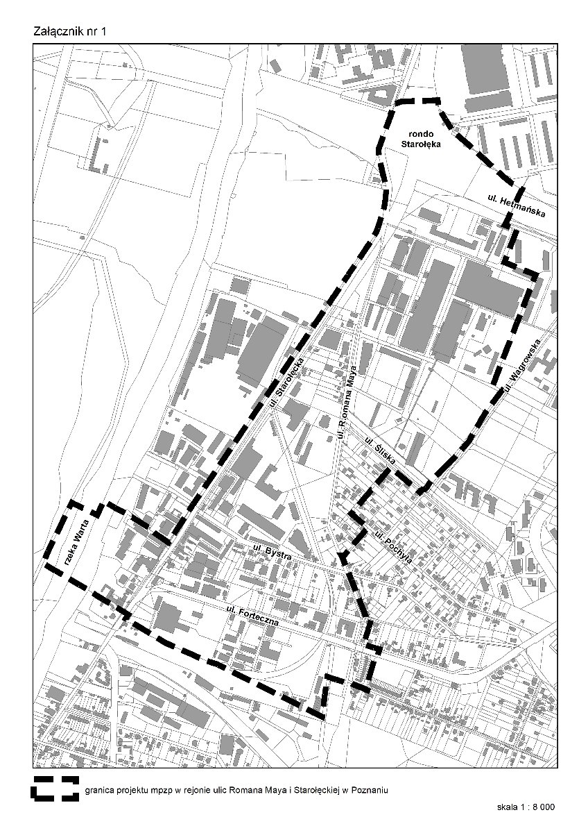 Granica planu mpzp w rejonie ulic Romana Maya i Starołęckiej w Poznaniu