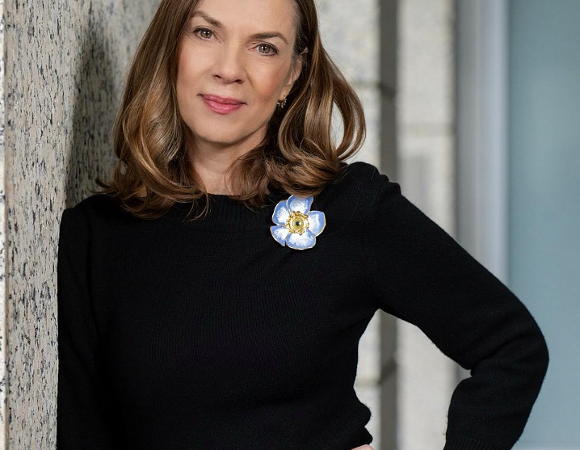 na jasnym tle zdjęcie kobiety ubranej w ciemną marynarkę