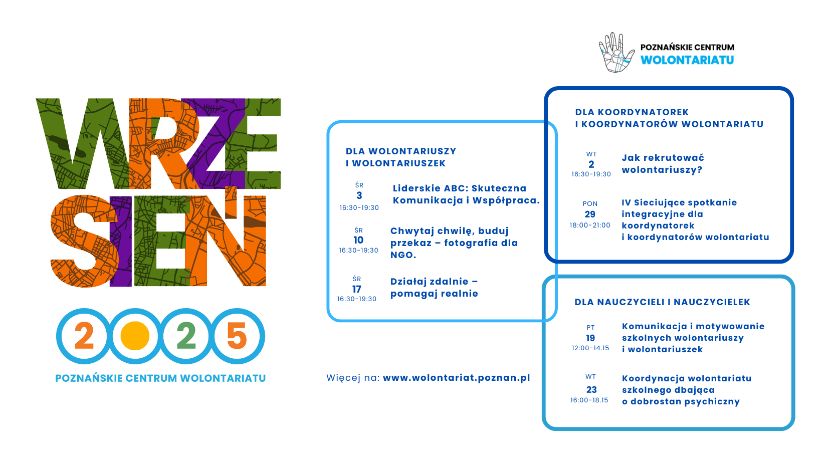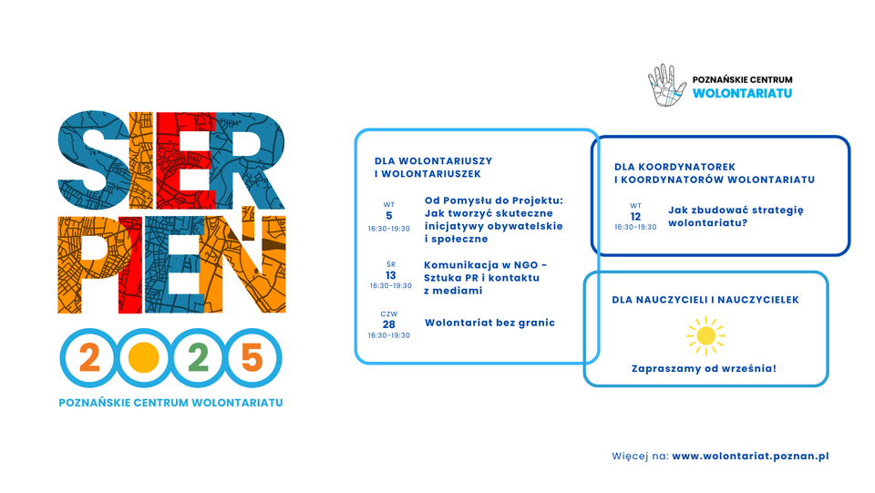 Oferta bezpłatnych warsztatów w Poznańskim Centrum Wolontariatu - wrzesień 2025