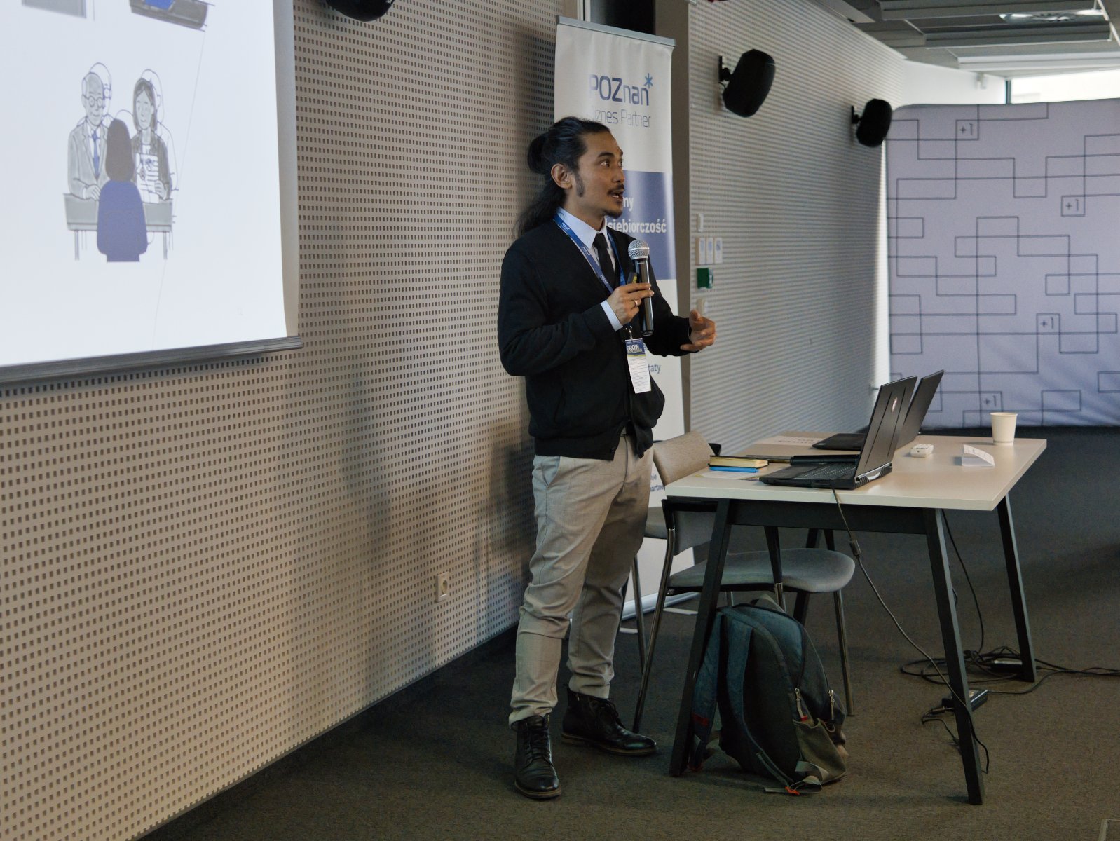 Po części merytorycznej odbył się blok inspirujących wystąpień przedsiębiorców pochodzących z różnych stron świata, którzy właśnie w Poznaniu rozwijają swoje firmy. Ich doświadczenia pokazały, jak różnorodne są ścieżki biznesowe, jakie wyzwania napotykają osoby rozpoczynające działalność w Polsce oraz jak wiele możliwości daje Poznań - miasto otwarte, przedsiębiorcze i sprzyjające rozwojowi. Dziękujemy za wystąpienia: Jo Stephenson, Gerardo Santaniello, Kevin Davidson i Nathan James Thomas.