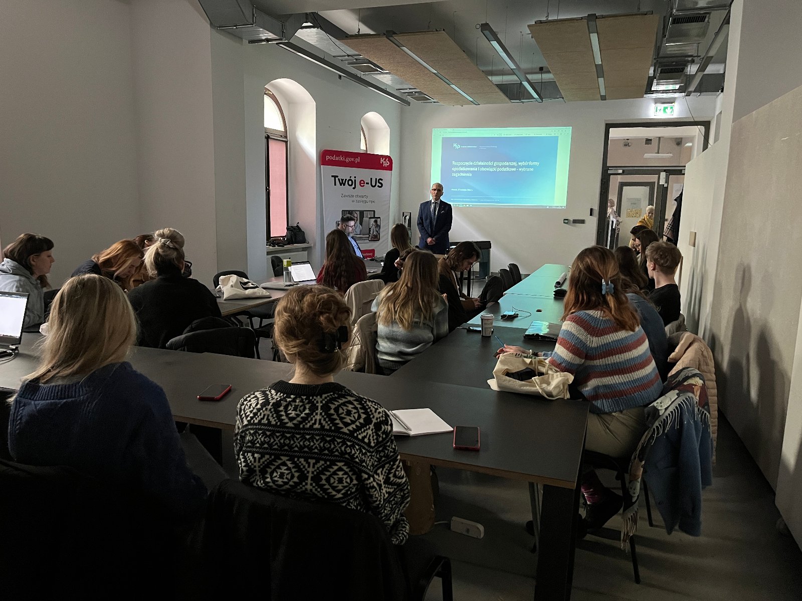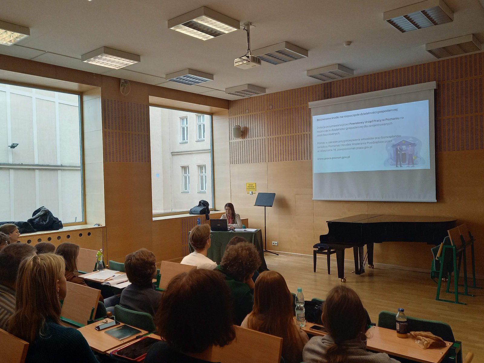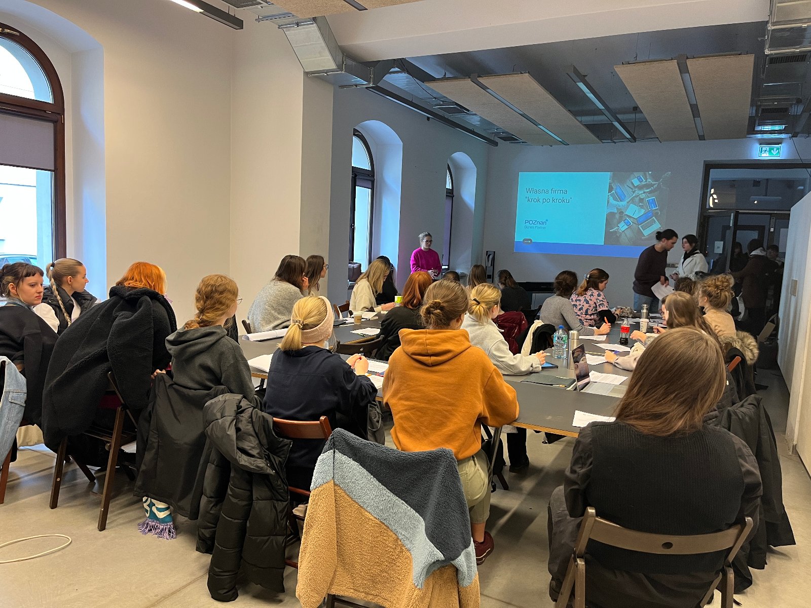 Cykl spotkań rozpoczął się od wprowadzenia do tematu zakładania własnej firmy. Przedstawiciele Urzędu Miasta Poznania omówili krok po kroku proces przygotowań do prowadzenia działalności gospodarczej w Polsce, wskazując najważniejsze formalności, z którymi musi się zmierzyć przyszły przedsiębiorca. Ponadto przedstawiono dostępne na rynku instrumenty wsparcia finansowego i niefinansowego.